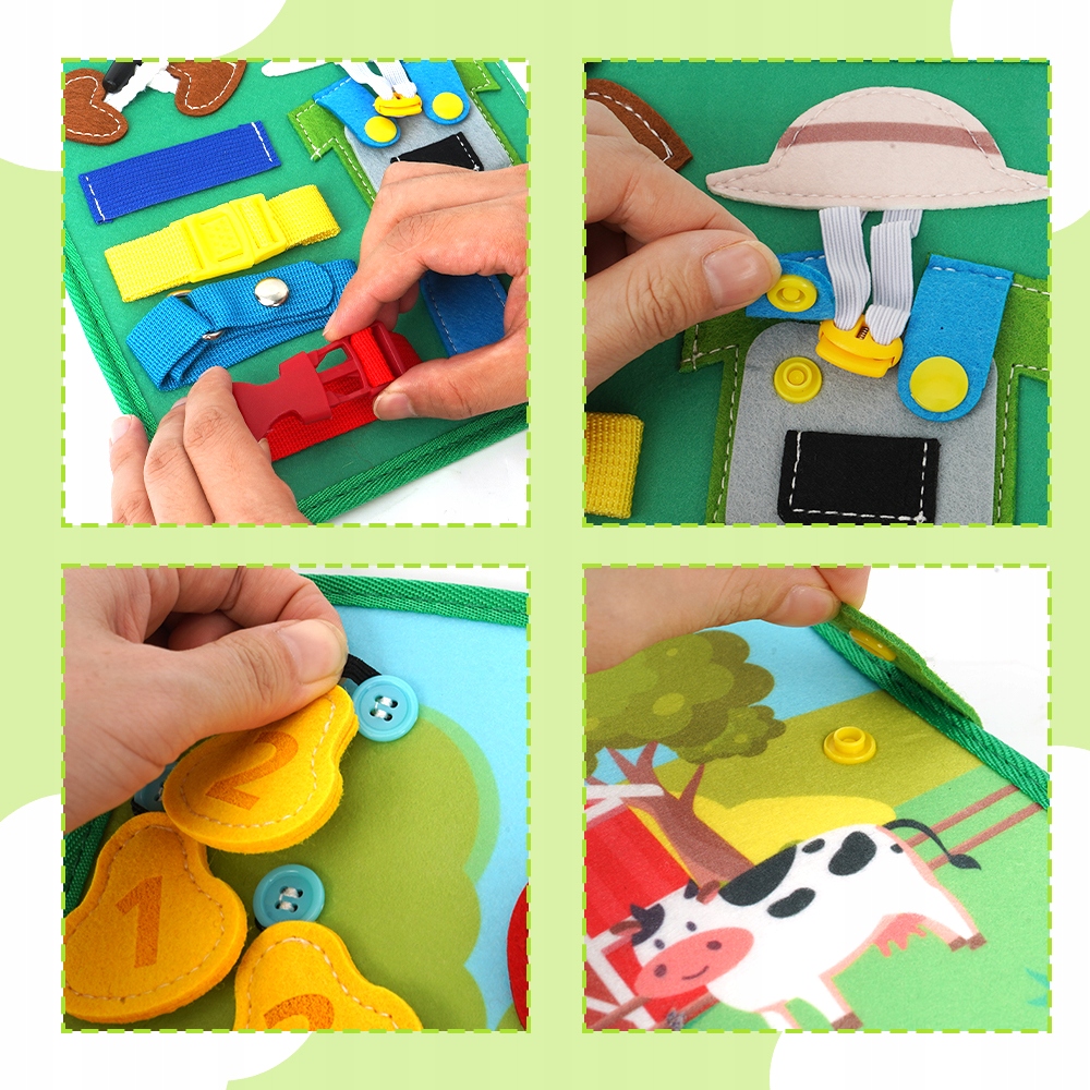 🌟🌟【Безопасная визитная доска для детей от 1 года】Книжка для малышей изготовлена из безопасного, высококачественного фетра, мягкого и приятного для кожи. Подходит в качестве развивающей игрушки для детей старше 1 года. Прочные швы и надежная конструкция позволяют этой доске для малышей выдержать все испытания в игре и надолго развлекать детей.