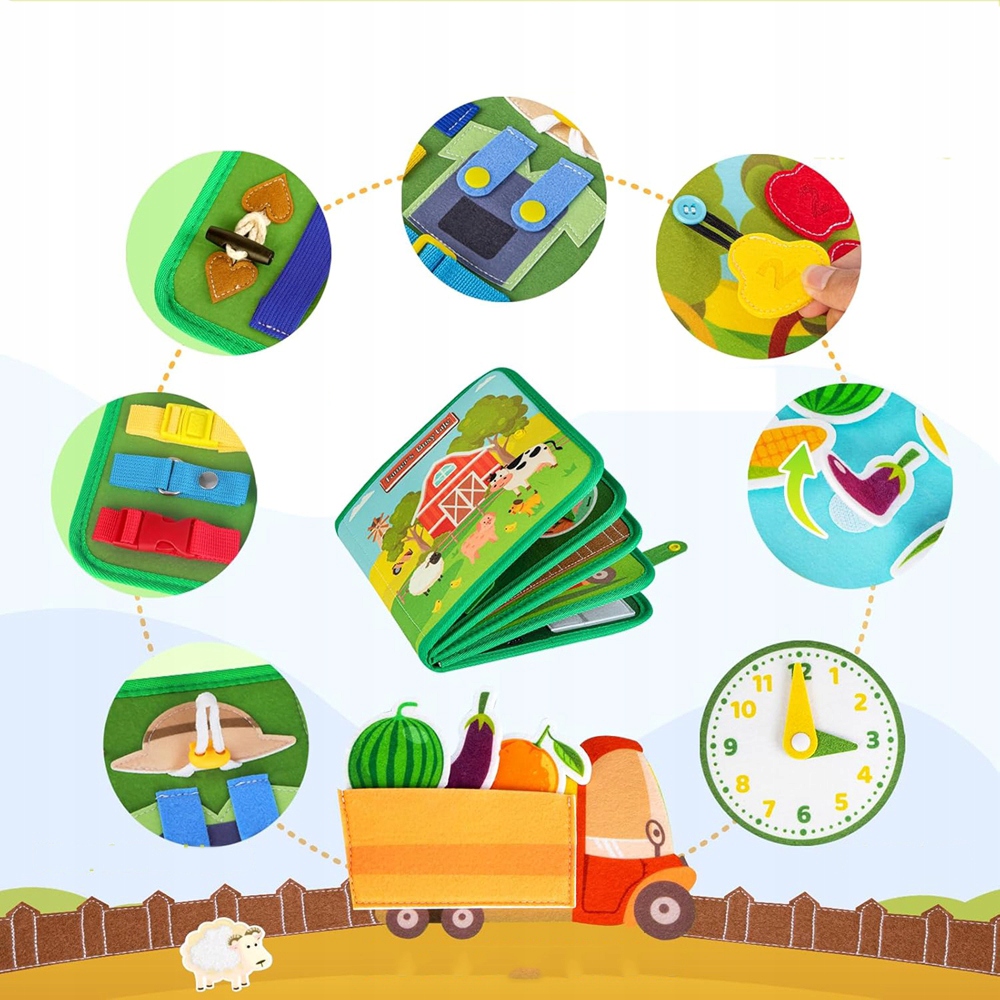🧑🌾🧑🌾【Бизнес-книга Монтессори на ферме】 Наша книга Монтессори «Жизнь на ферме» содержит 8 страниц и 18 занятий, предназначенных для вовлечения и обучения малышей в возрасте от 1 до 3 лет, знакомя их с основными жизненными навыками и знаниями. От освоения кнопок и нажатия до изучения времени, погоды и ежедневных задач на ферме - малыши будут развивать практические навыки и приобретать познавательный опыт жизни на ферме.