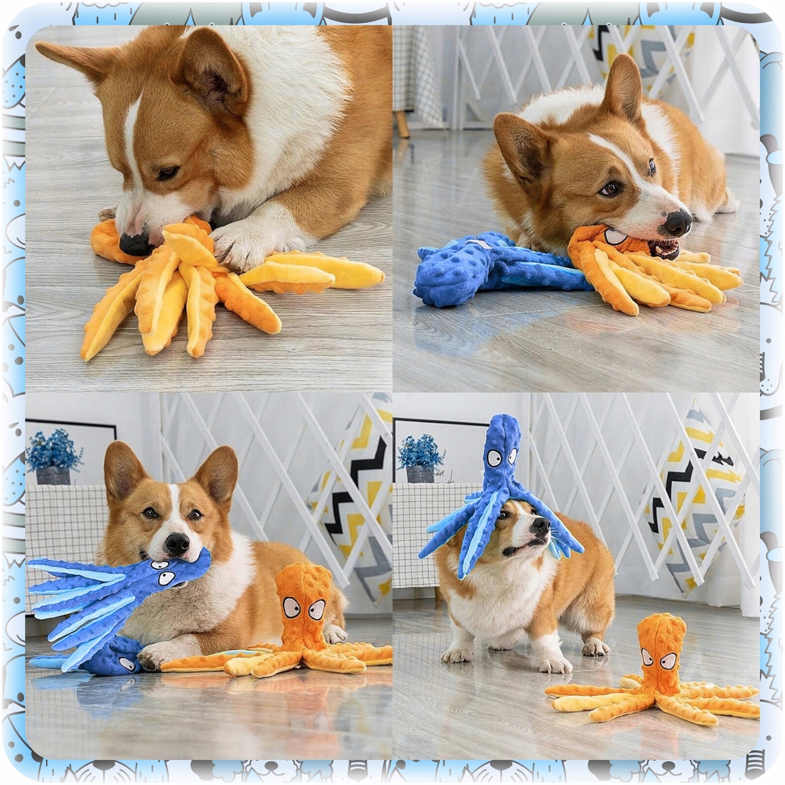 ☘ выберите идеального игрового компаньона для вашей собаки - голубой талисман осьминога b>, который впечатляет с мягкостью, мульти - Функциональность и стимулирующие звуки >