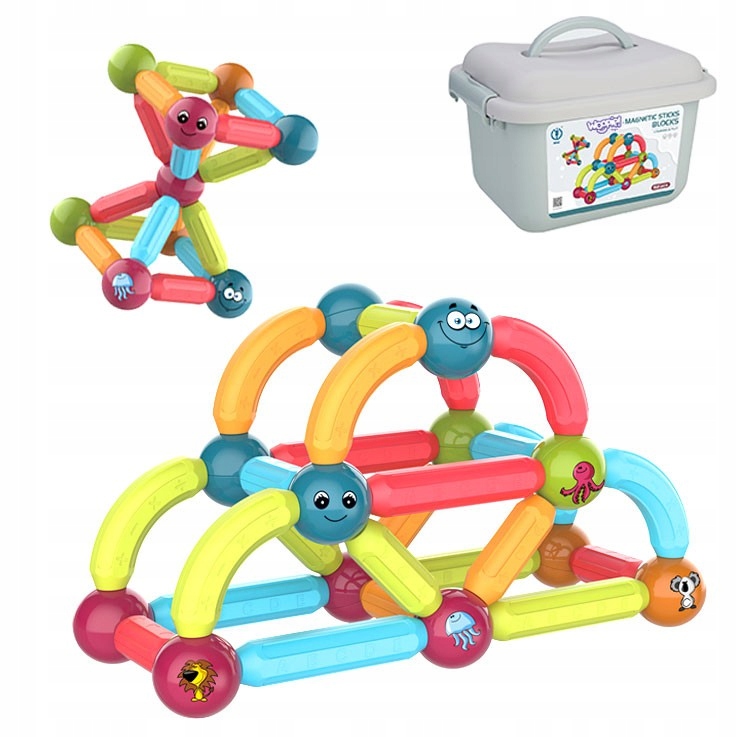 - Игрушка создана с учетом безопасности детей. . Блоки толстые, на магнитных шариках изображены забавные рисунки животных и улыбающиеся лица.