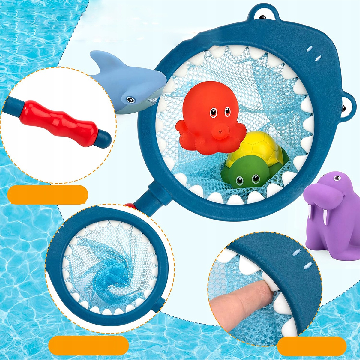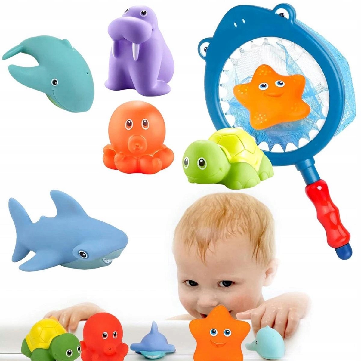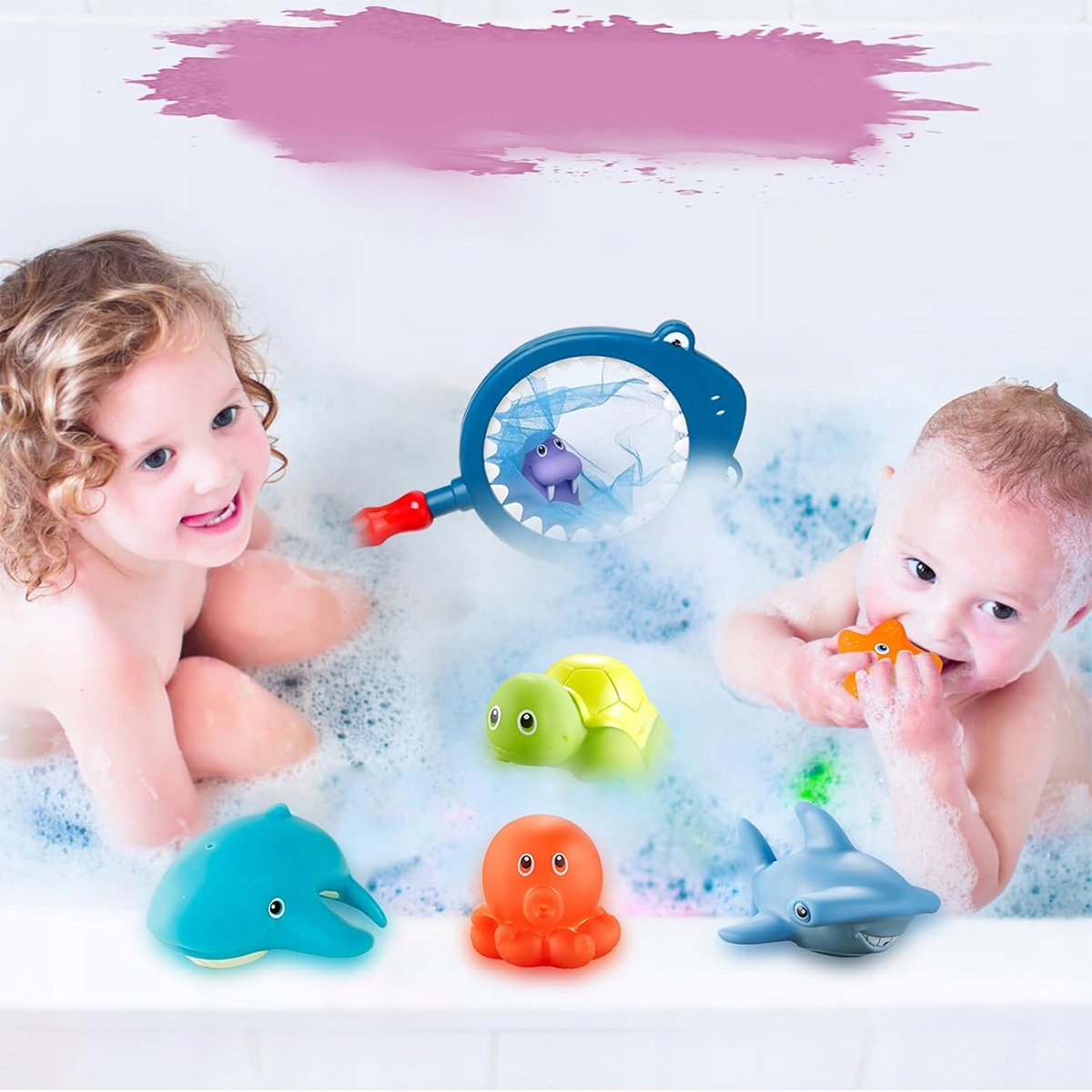Игрушки для детской ванночки, игрушки для ванночки из 7 предметов, детские игрушки для воды, игрушки для бассейна из рыбной сети, подарок для ванны с черепахой и акулой для мальчиков и девочек в возрасте 2, 3, 4, 5, 6+ лет