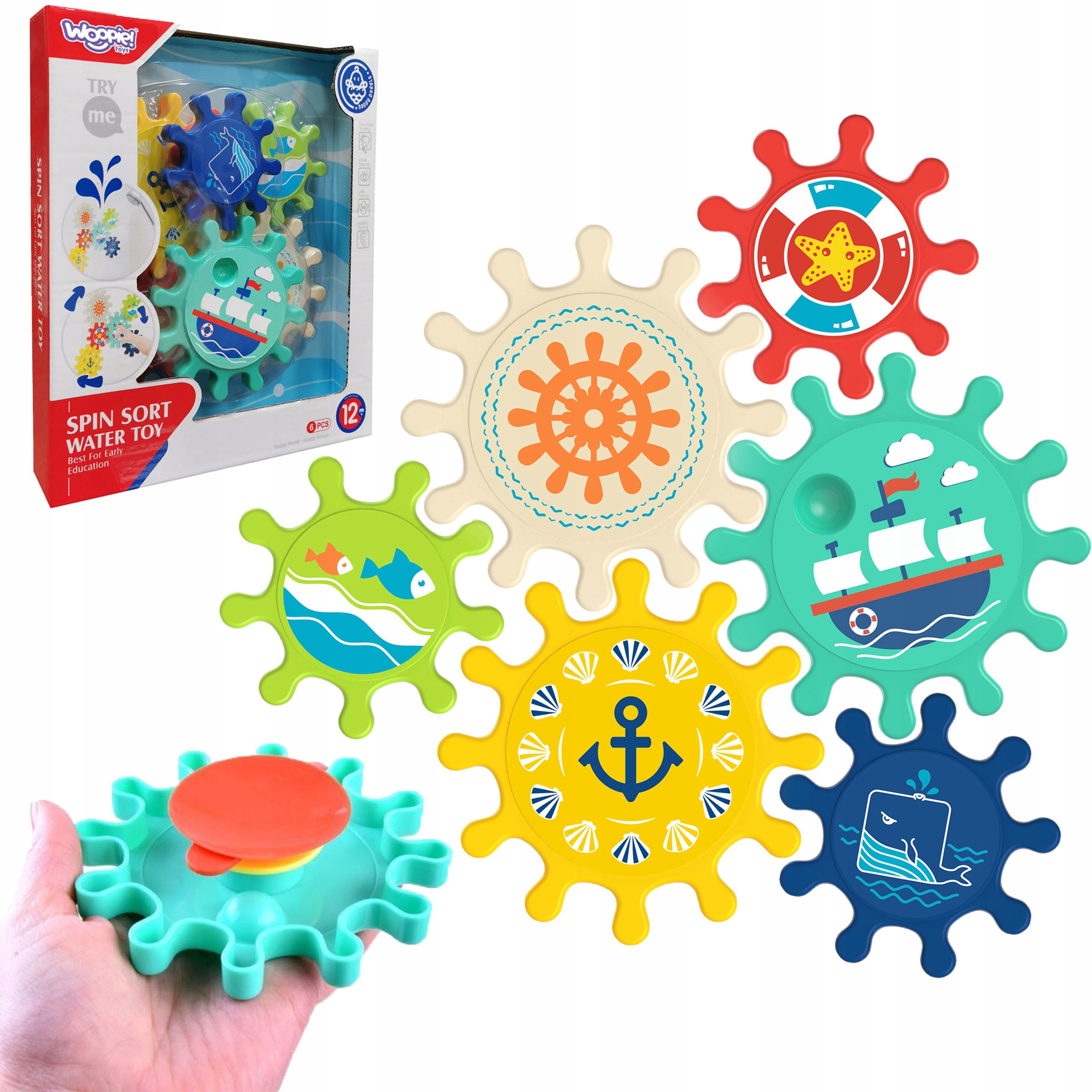Разноцветные шестеренки от Woopie < бренд /b>это игрушка, которая делает купание детей более приятным. В набор входят 6 разноцветных шестеренок двух размеров. Присоски, расположенные рядом с каждой звездочкой, позволяют прикрепить ее к плитке, ванне или душевой кабине таким образом, чтобы элементы сцеплялись. Играя, ребенок перемещает один элемент и приводит в движение всю конструкцию. Играя, малыш познает принцип причины и следствия, развивает чувства, а красочная морская графика побуждает к игре и разнообразит веселье в душе или ванне.