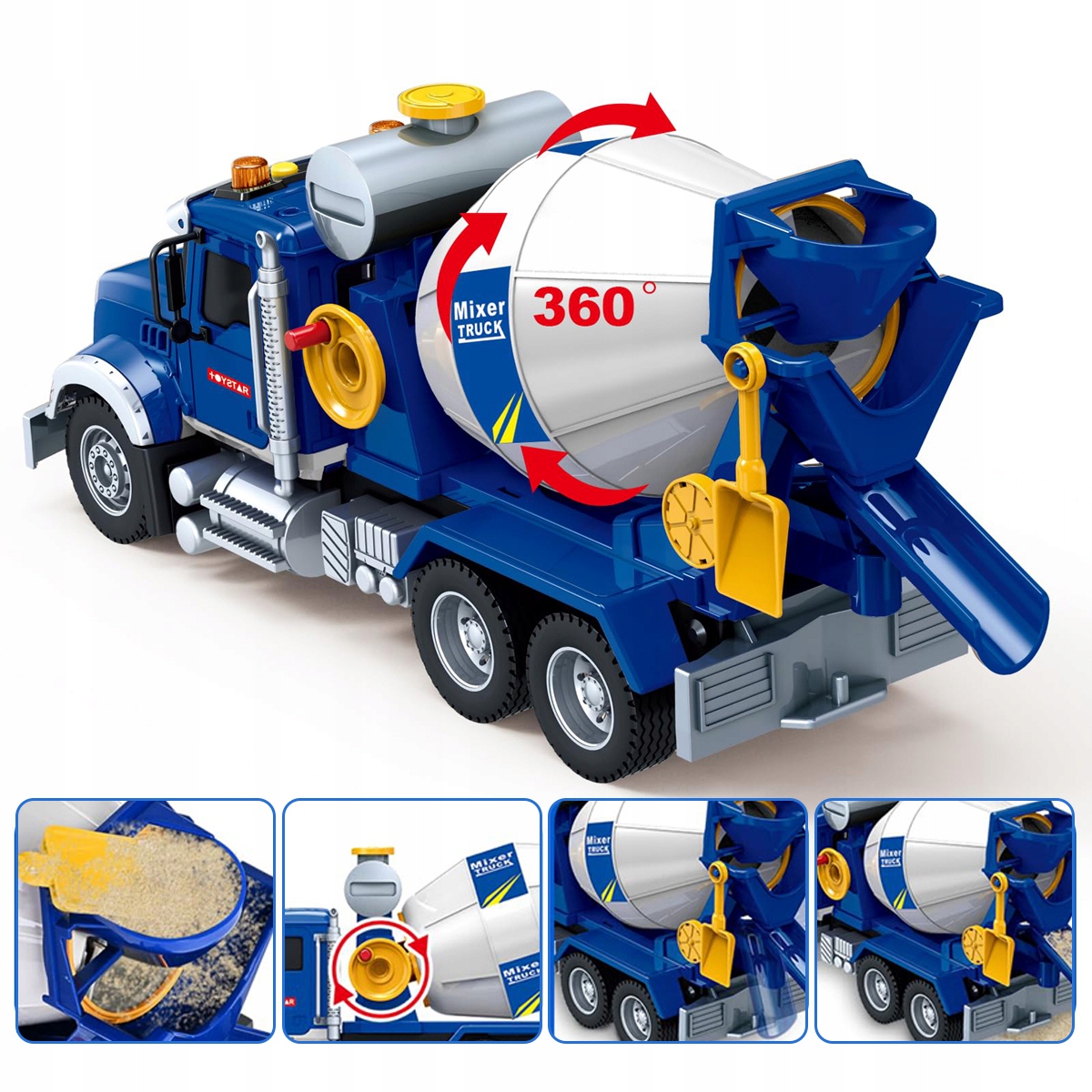 Этот большой и красиво спроектированный игрушечный бетонный миксер, безусловно, впечатлит как детей, так и взрослых. Он содержит 360 ° роллер и кривошип, благодаря тому, что дети могут взаимодействовать и узнать о бетонном миксере через игру.