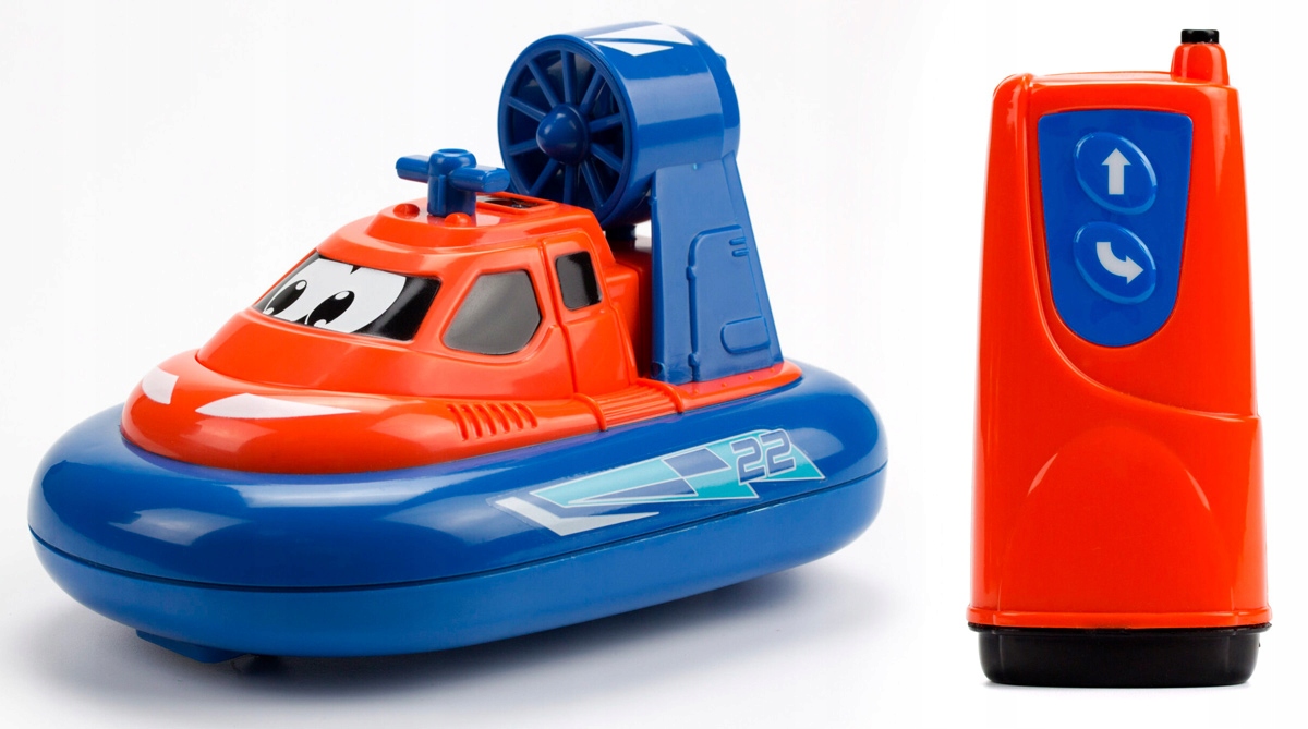 В комплекте идет пульт водонепроницаемый, поэтому он не боится брызг во время игры. Позволяет поворачивать судно на воздушной подушке вперед и поворачивать назад.