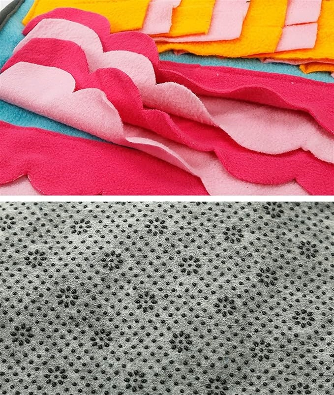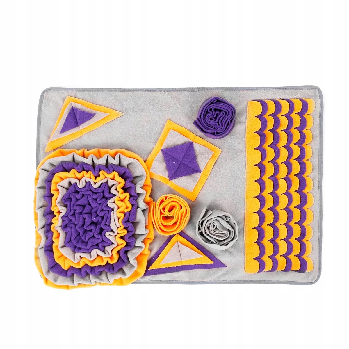 Он будет обнюхивать и искать спрятанные деликатесы в укромных уголках коврика. Коврик плотно сшит из полосок мягкого флиса.