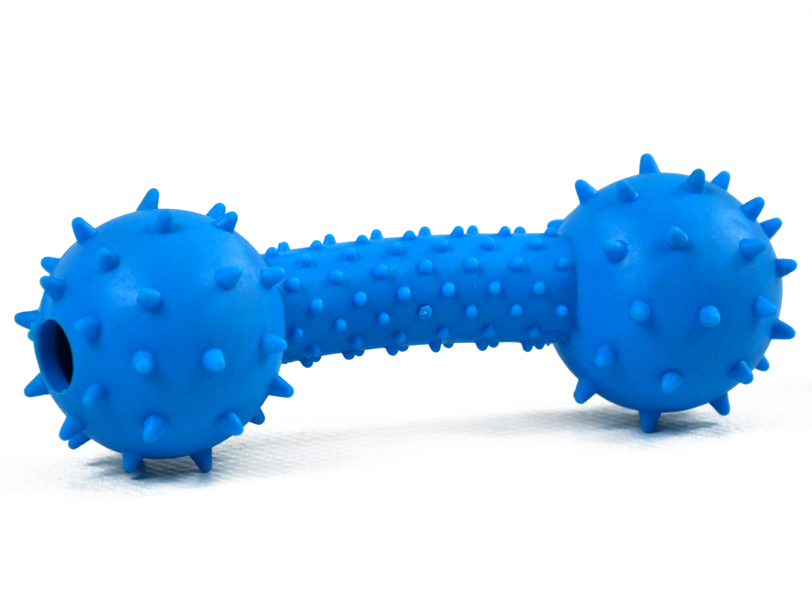 Кроме того, гантель имеет выступы, которые массируют десны собаки или кошки, что положительно влияет на их здоровье.