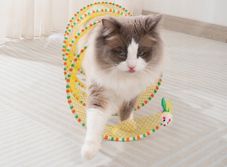 ✅Кроме того, туннель можно использовать как удочка для кошки – растяжение и сворачивание туннеля побудит кошку «охотиться» за прикрепленной мышью.