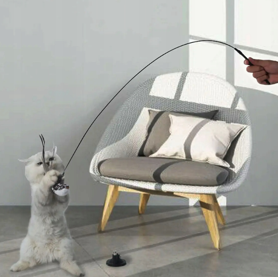 Удочка изготовлена из гибкого материала, который обеспечивает динамическое движение и имитируя естественные движения добычи. Вы можете отрегулировать длину стержня в соответствии с предпочтениями вашей кошки, предоставив ей максимальную свободу движений - закрепив ее выше или ниже, например, на оконном стекле ❤️