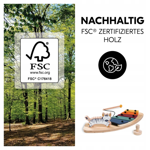 Игровой стол быстро крепится к основанию с помощью деревянного винта, поэтому он надежно удерживается на месте во время игры. Игра изготовлена из дерева, произрастающего в лесах, сертифицированных FSC®, и вдохновляет красивыми цветами и очаровательным дизайном, удобным для детей. Гладкие поверхности устойчивой игрушки при необходимости можно легко протереть влажной тряпкой.