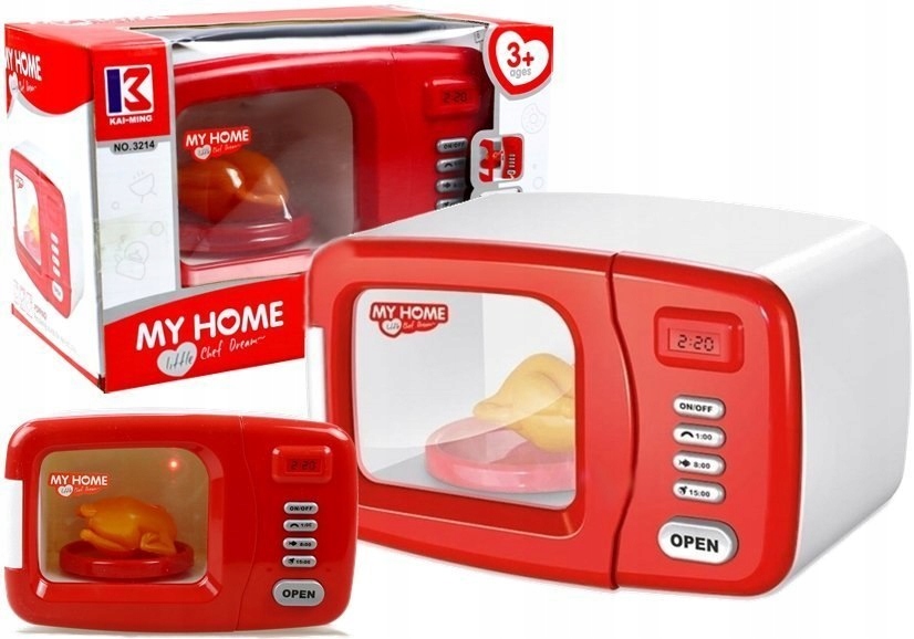 Микроволновая печь с открывающейся дверцей, изготовлена из качественного пластика.