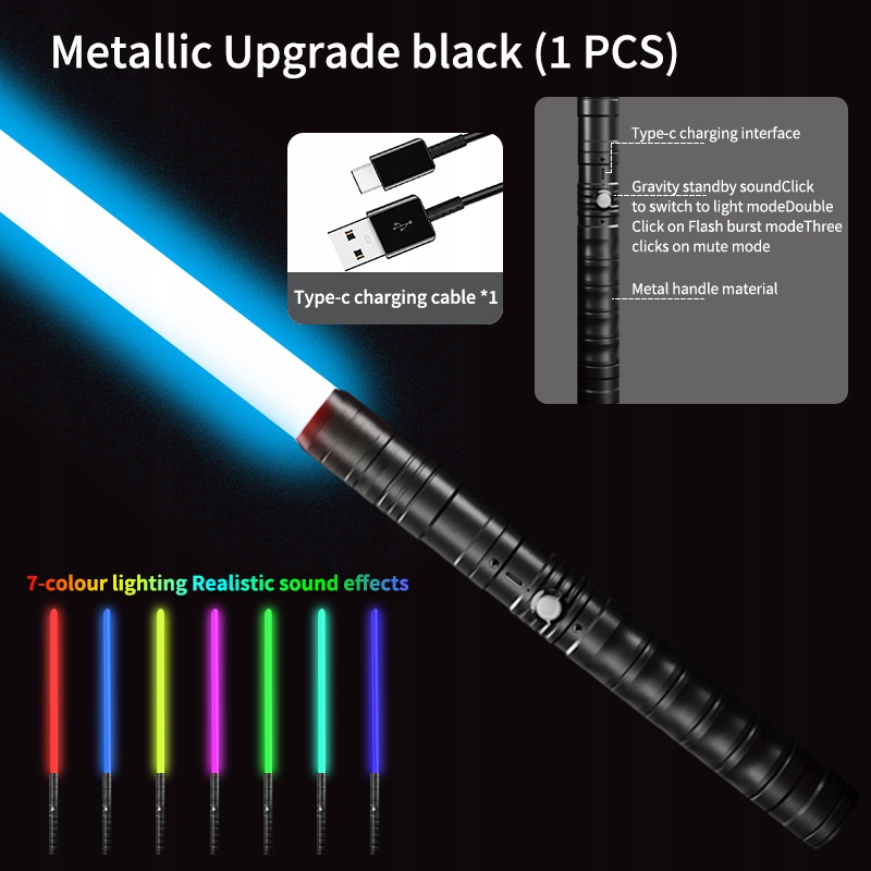 Этот уникальный световой меч представлен в 7 различных цветах, которые вы можете менять в зависимости от настроения. Он также имеет набор динамических звуковых эффектов. Эти элементы делают наш прочный световой меч идеальным инструментом для бесконечных творческих развлечений.