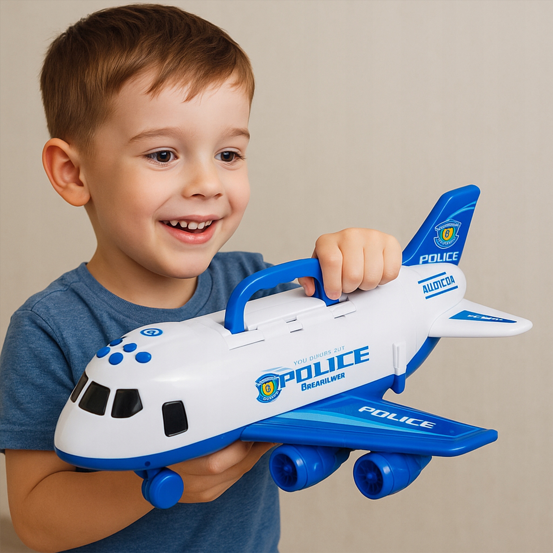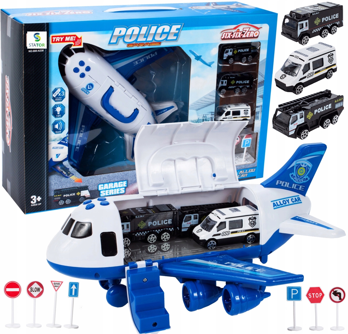 Полицейский транспортный самолет с трением, адаптированным к транспортировке транспортных средств! h1> Самолет складывается и открывается, имеет светлые и звуковые эффекты! h2>