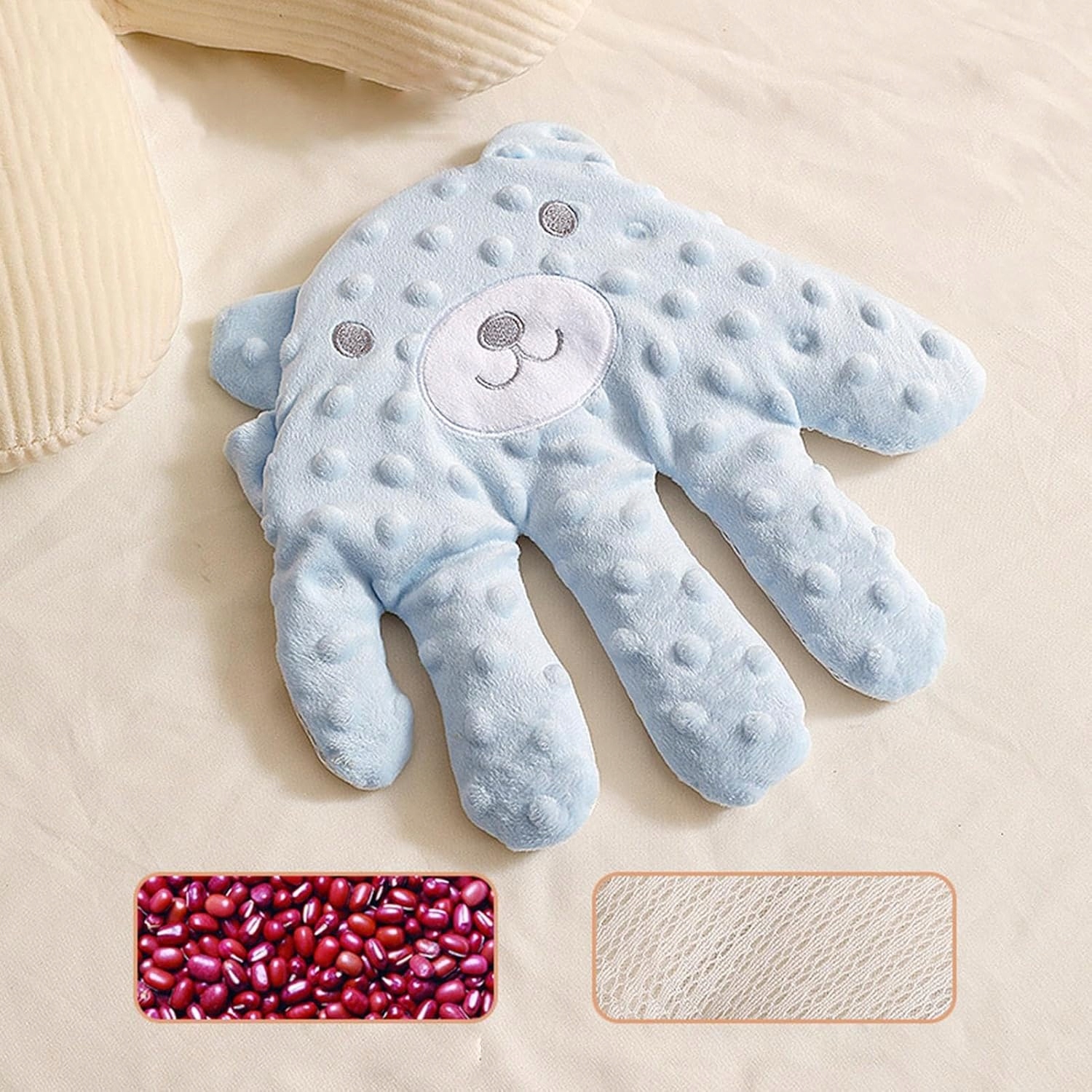 - имеет форму очаровательного маленького медведя и наполнен красной фасолью. Внутренняя вставка может быть нагрета, чтобы получить горячую сжатие.