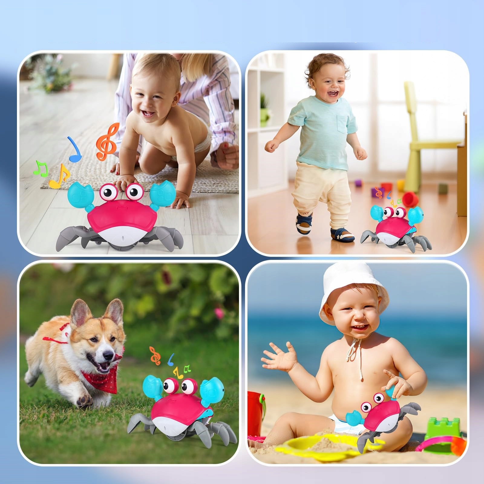 - Игрушка отлично подходит для лежания на животике и первых попыток поднять голову. Детям в возрасте 0–2 лет нравится наблюдать за движением краба, что побуждает их тренироваться и развивать моторные навыки, например, поднимать голову, поворачиваться, сидеть и ползать.