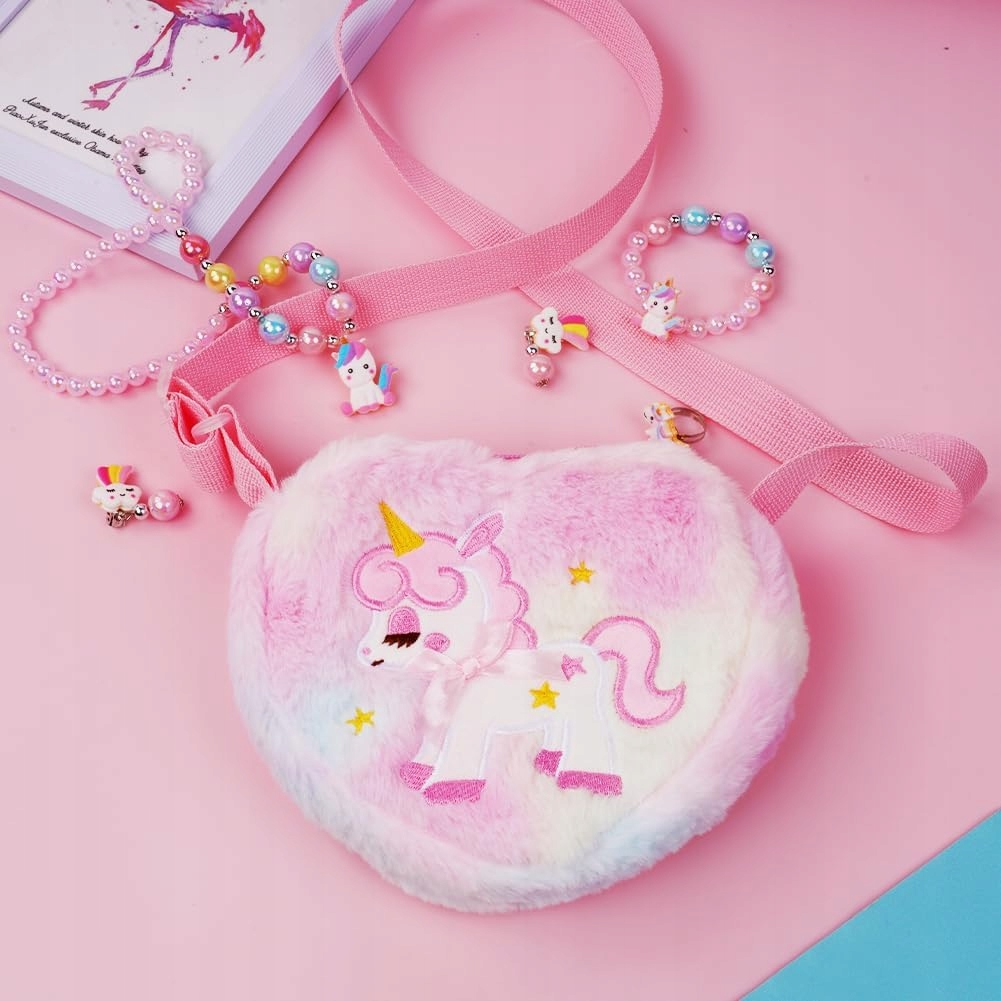 Мягкая и приятная в носке Сумочка с мотивом единорога в оттенках розового и пастельных тонов - настоящий хит среди девочки! Сумка имеет съемный регулируемый ремень, поэтому ее можно носить на плече или через плечо. В нем можно хранить небольшие сокровища, салфетки, блеск для губ или другие детские аксессуары.