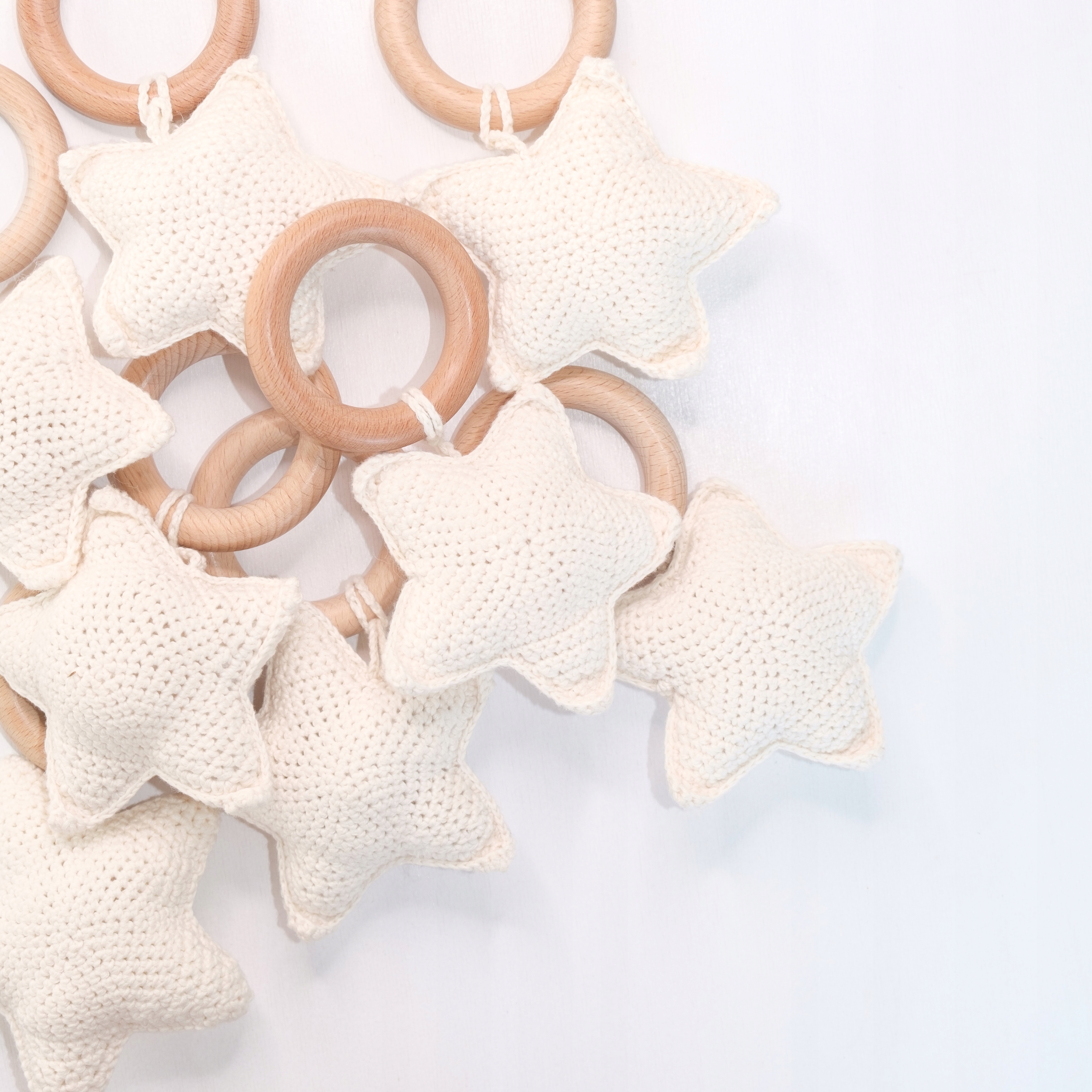 Звезда подвешена на деревянном кольце диаметром 7 см.