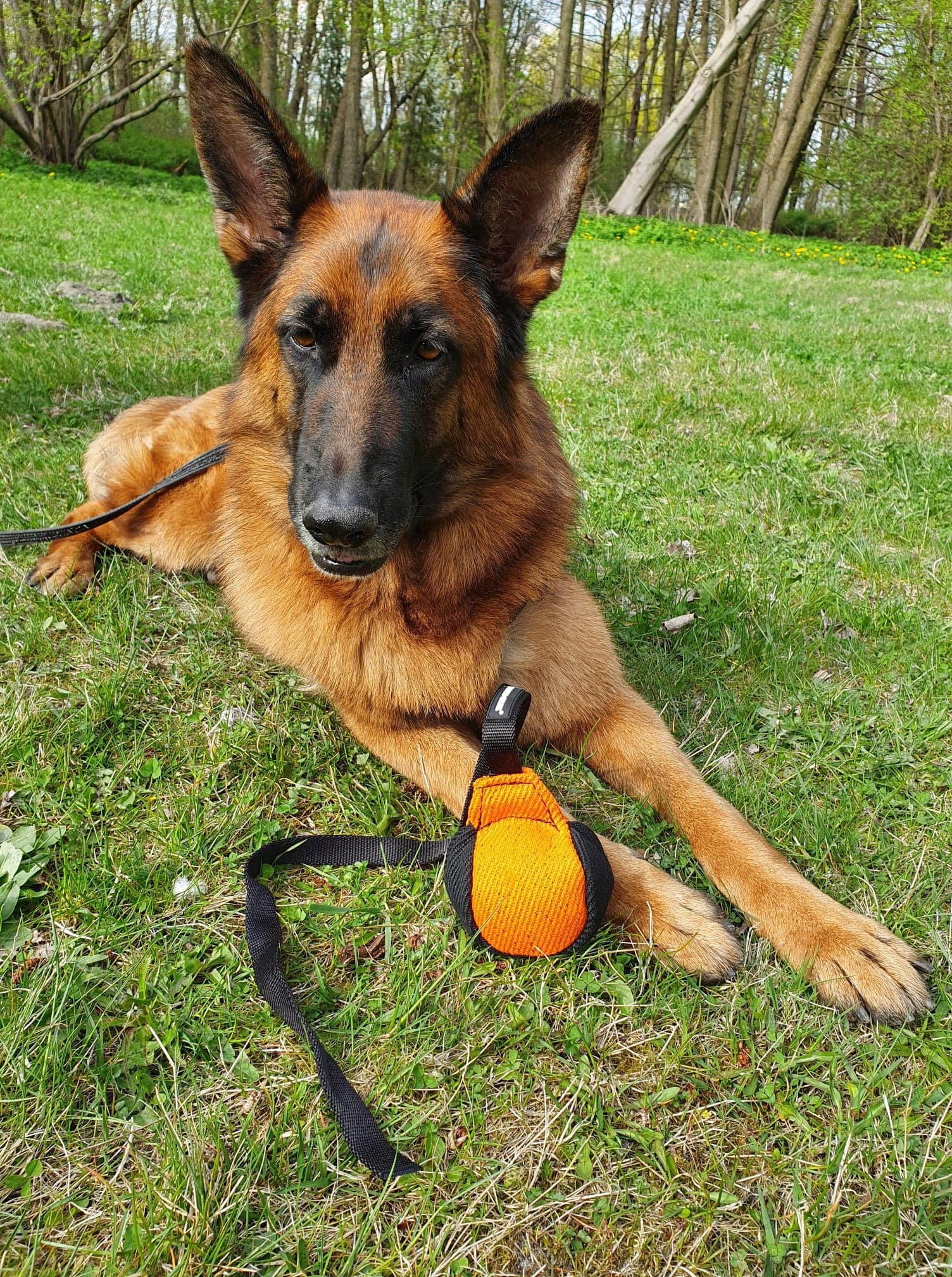 Прочная обучающая игрушка в форме шара диаметром 9 см и длиной ручки 65 см, изготовлена из французского материала (нилкот). Он достаточно мягкий и позволяет собаке сохранять хорошую хватку. Его можно использовать как для тренировки, так и для развлечения. Оно протестировано и одобрено профессиональными дрессировщиками собак.