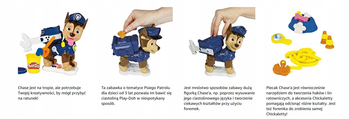 ➡️ В набор Play-Doh «Щенячий патруль» входит большая фигурка Чейза с интересными функциями, такими как сжимание языка из пластилина, а также множество формочек для создания костей, значков и многого другого!