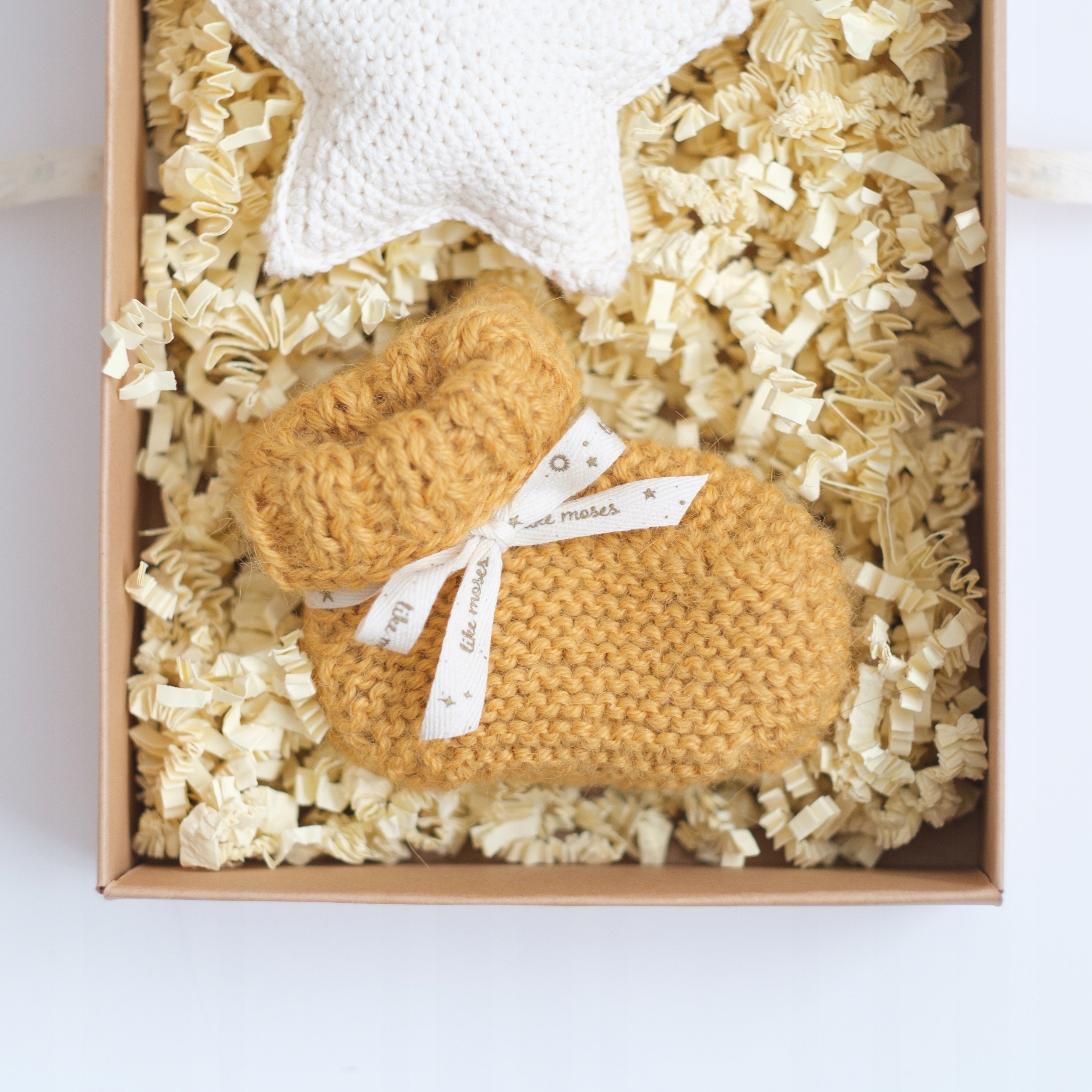 ПОДАРОЧНЫЙ НАБОР - СВЯЗАННЫЕ КРЮЧКОМ ЗВЕЗДЫ И ШЕРСТЯНЫЕ ТУФЛИ ДЛЯ МАЛЫШЕЙ