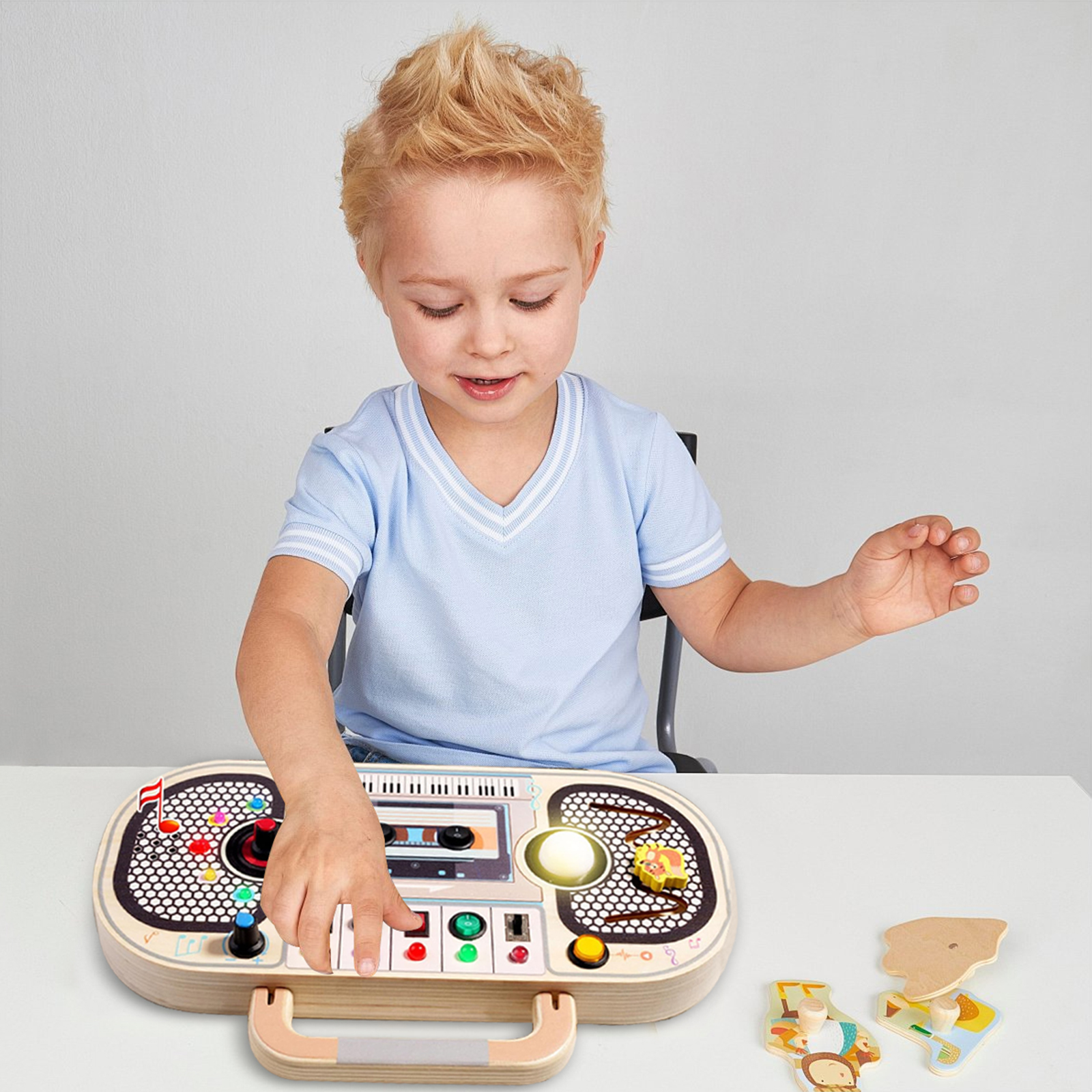 🎵🎶📞[Прочный и безопасный] Доска для магнитофона изготовлена из дерева, тщательно изготовлена вручную, прочная и долговечная, без острых краев, чтобы обеспечить безопасность детей во время исследования мира.🔊🍼👶