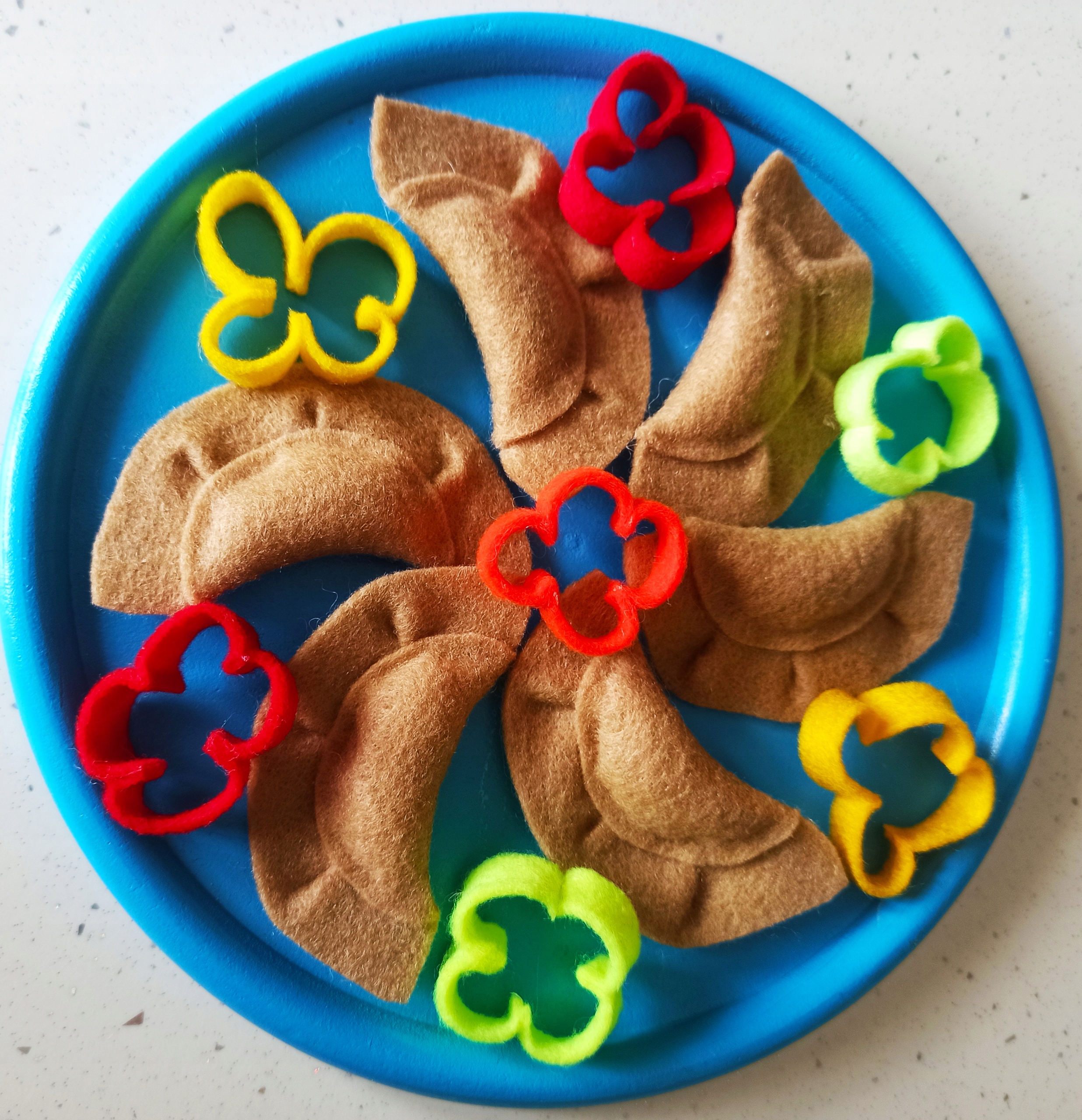 Размеры пельменей: 7см х 4см. В набор входят 6 пельменей и 7 разноцветных перцев. Отдельные ингредиенты не сшиты между собой, их можно свободно комбинировать и переставлять.