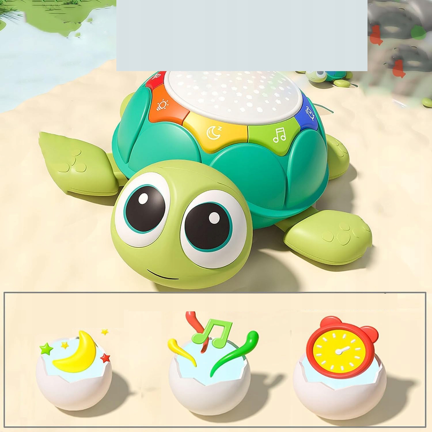 Многофункциональная игрушка – детская игрушка в форме черепахи имеет множество функций. Он имеет функцию сканирования, воспроизведение музыки, проекцию звезд и режим времени. Эти функции позволяют детям учиться и развиваться в приятной обстановке и закладывать основы их будущего.