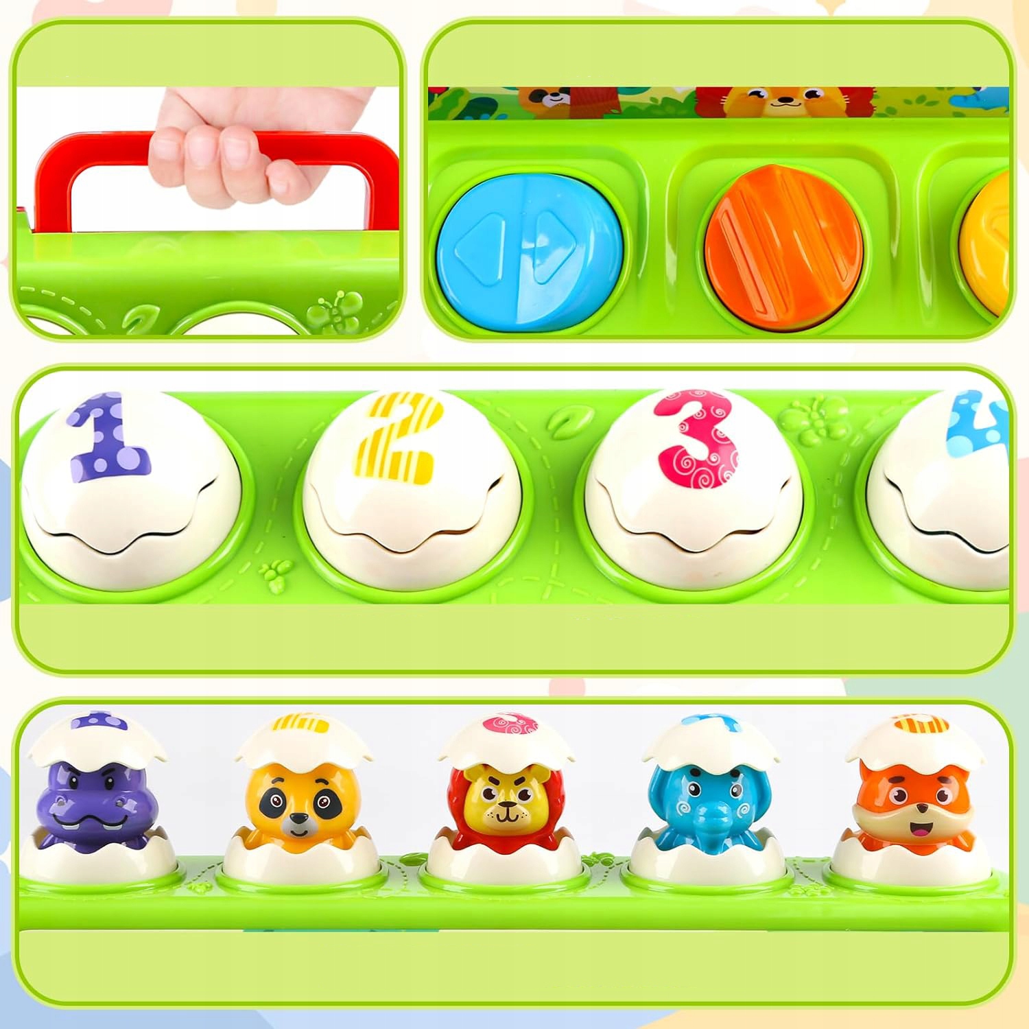 Отличная игрушка-яйцо-животное для малышей, идеально подходит для хватания и поглаживания, укрепления мышц рук ребенка. Животное выпрыгивает при нажатии на рычаг, переключатель, ручку или кнопку. Помогает в изучении чувств и раннем развитии.