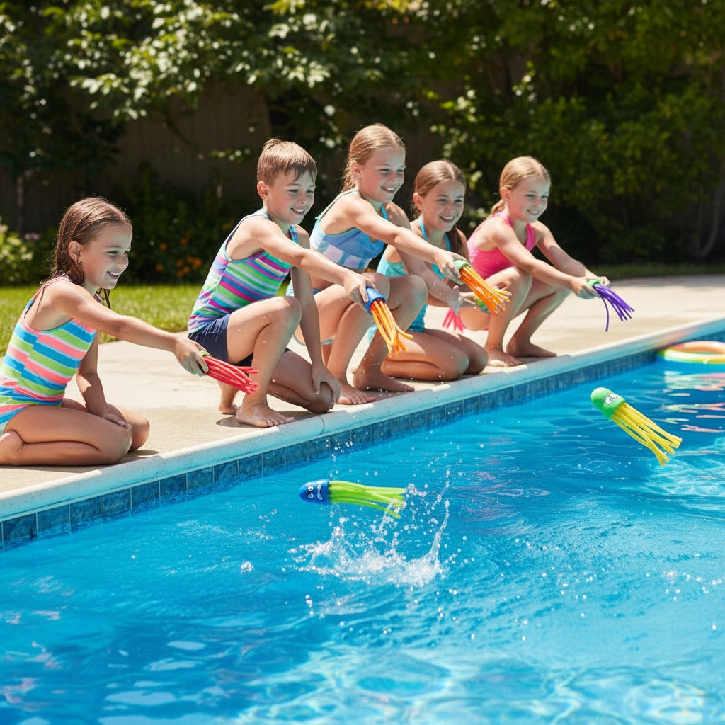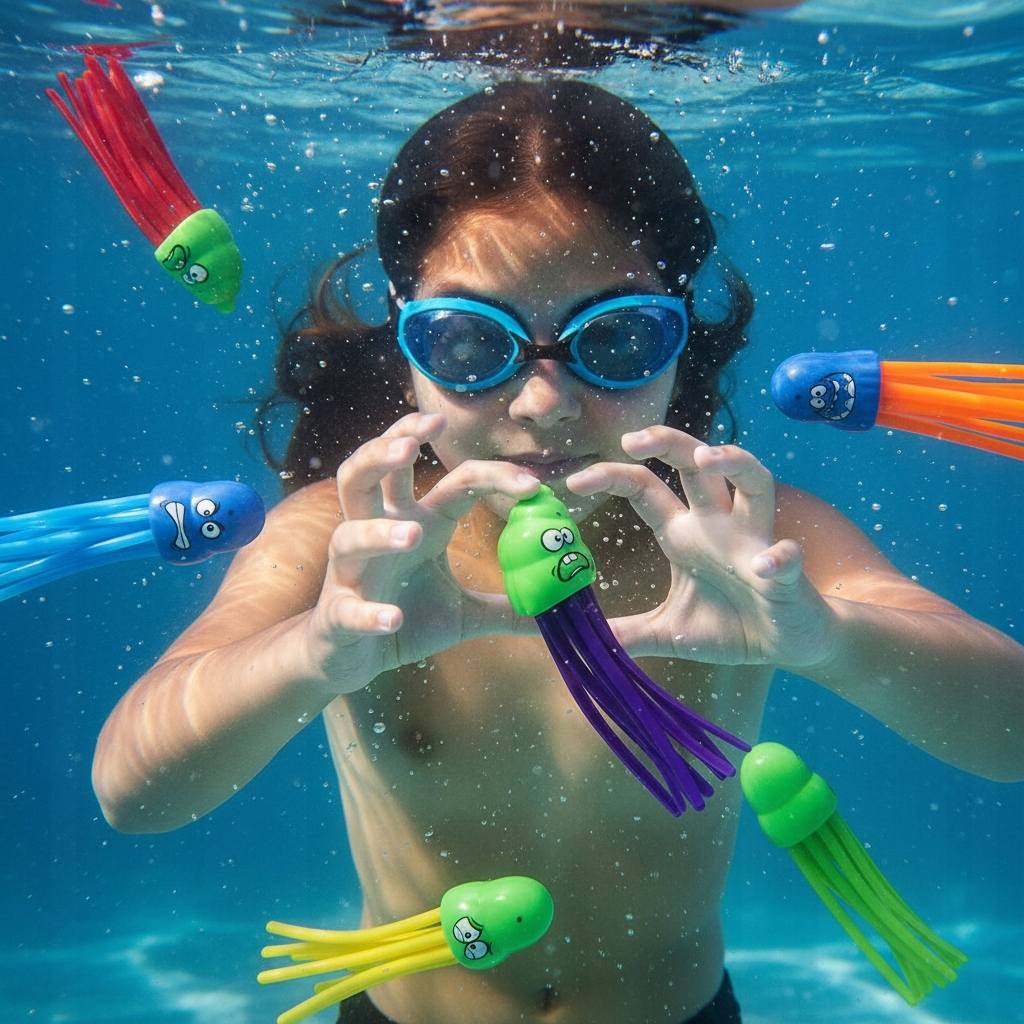 ▶️ Благодаря специальному грузу они опускаются на дно и стоят вертикально, побуждая детей от 3 лет нырять и играть в воде. Изготовлен из материалов, не содержащих латекса, соответствующих стандартам CE.