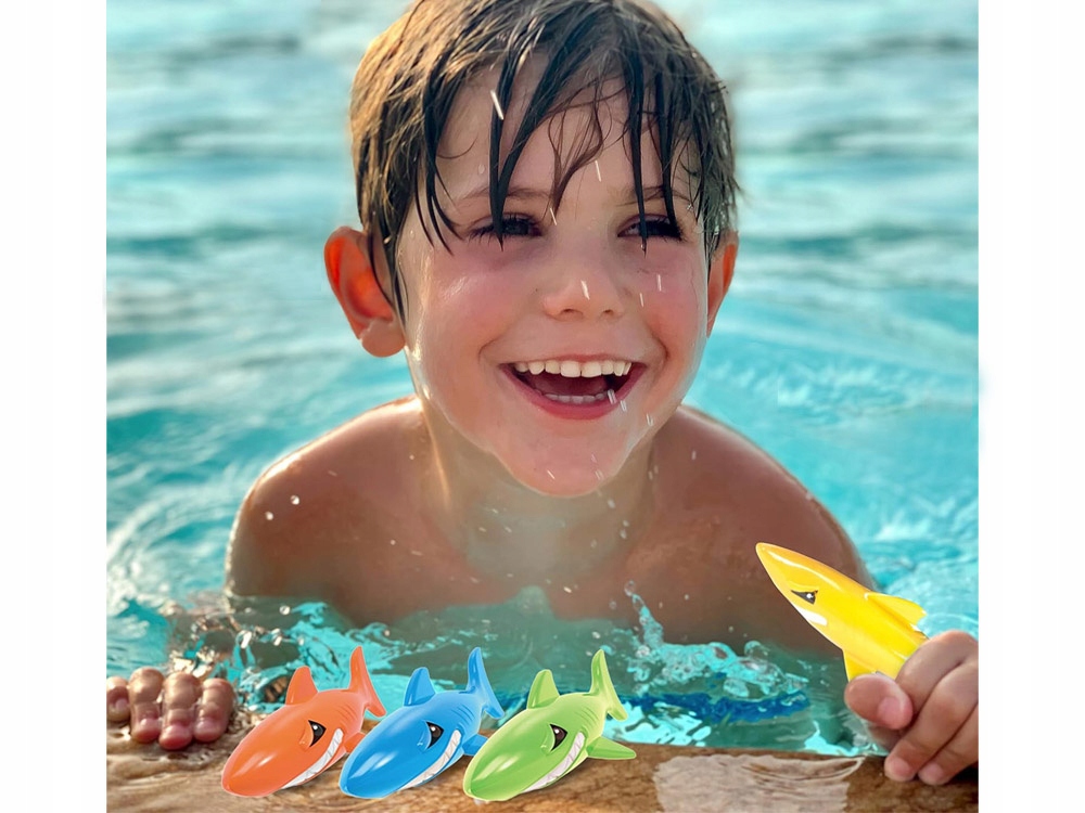Diving learning has never been so simple and pleasant! Dzięki naszemu Zestawowi Z Kolorowymi rekinami dzieci będą mogły w bezpieczny i radosny sposób oswajać się z wodą, uczyć się zanurzać oraz wstrzymywć oddą. This is a great form of activity that develops not only physical fitness, but also courage and confidence in water.