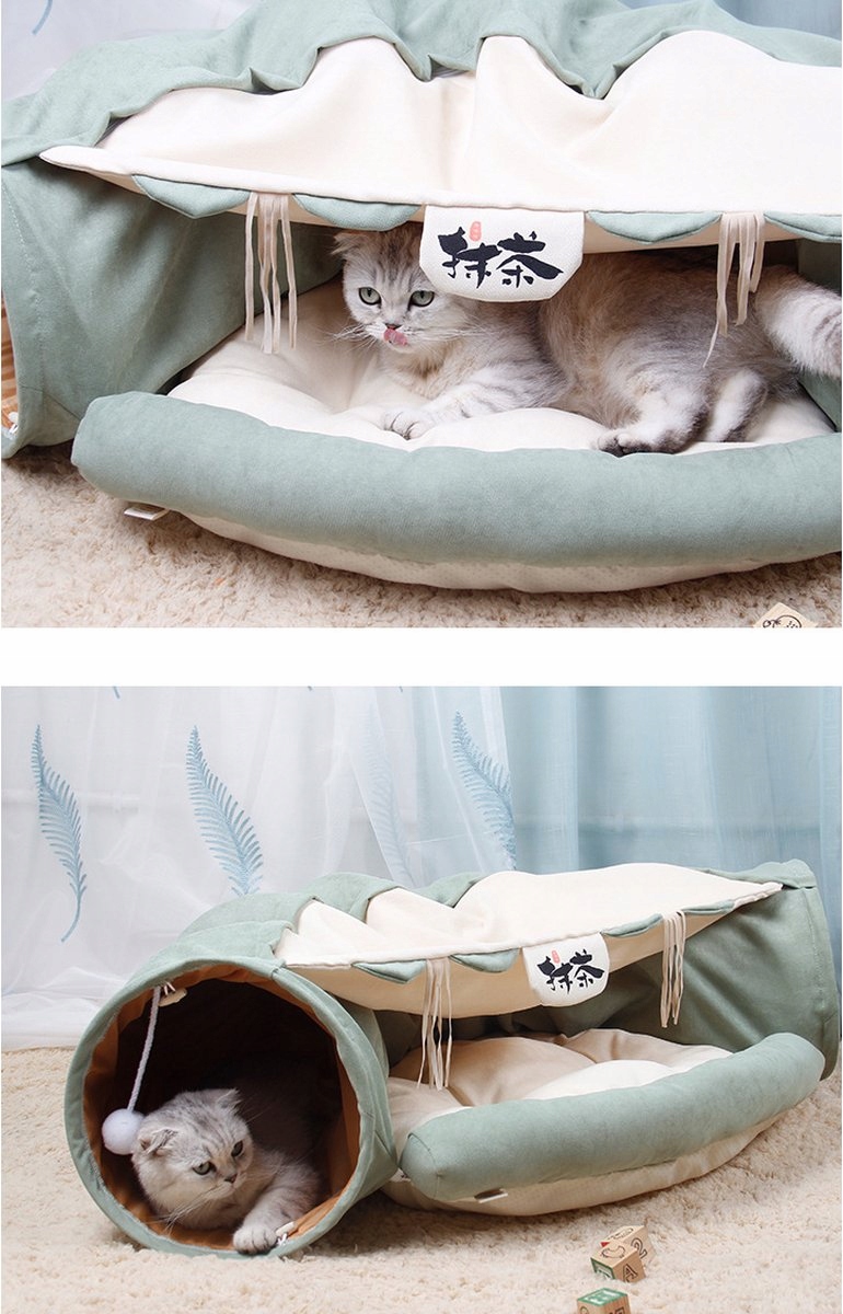✅ Эта складная лежанка для кошек с туннелем — идеальный выбор для вашего дома, поскольку она не занимает много места.