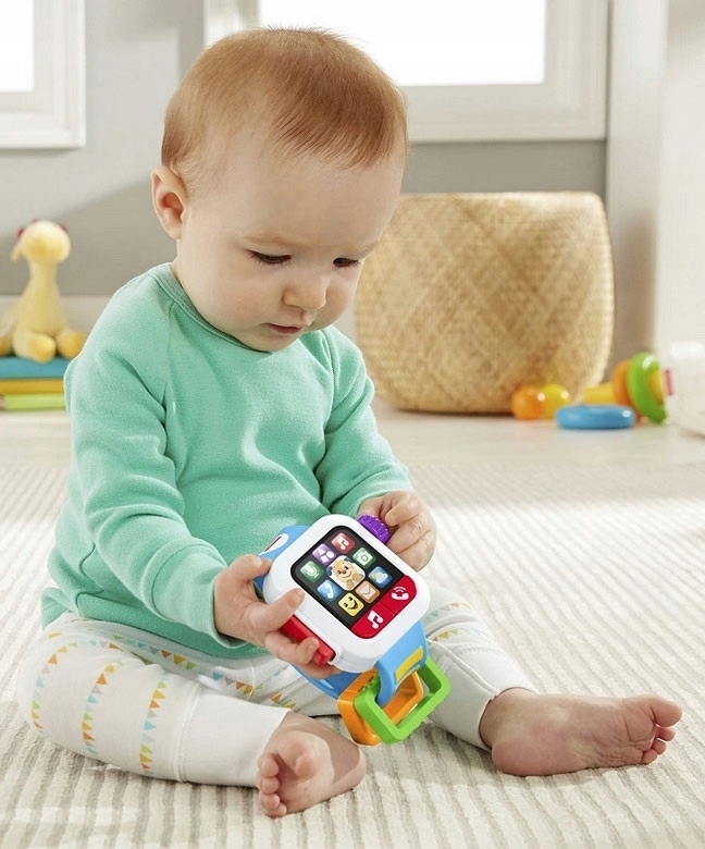 Игрушечные умные часы выглядят как настоящие, имеют экран с подсветкой, удобную для маленьких ручек ручку и множество активирующих элементов, которые ваш малыш будет рад обнаружить.