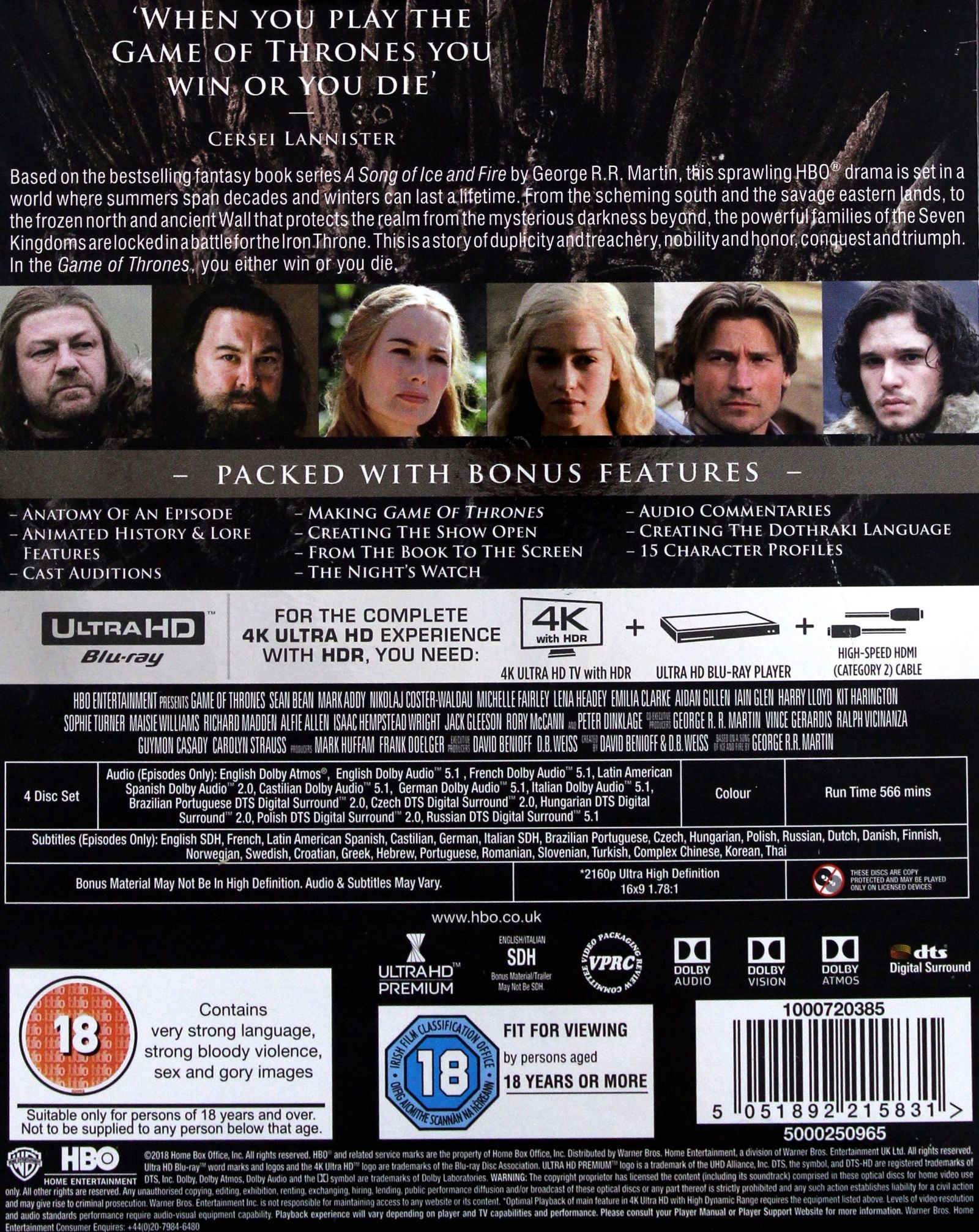 Игра престолов, 1 сезон [4xBlu-Ray 4K]