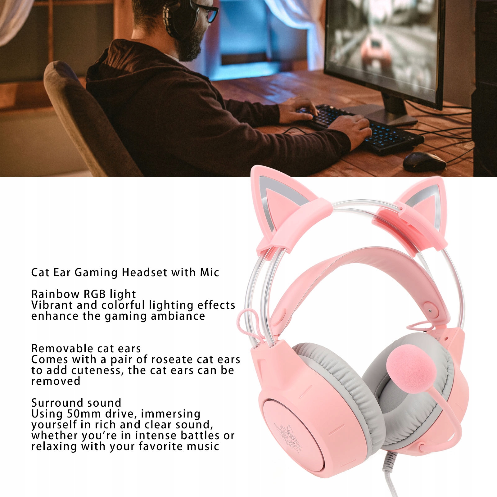 1. [Rainbow RGB Lighting] Стержень кошки с ушами кошек характеризуется живым и красочным эффектом радуги освещения RGB, что может улучшить атмосферу в игре. [Съемные кошачьи уши] В наборе пара розовых кошачьих ушей, которые добавляют очарование к вашему набору ruscorean. Кошки могут быть удалены. [Пространственный звук] Благодаря конвертеру 50 мм эти кошки с ушами кошки обеспечивают богатый, чистый звук как во время интенсивных сражений, так и расслабления с вашей любимой музыкой. [Эргономичный дизайн] Легкий буровой набор с мягкими, дышащими, запускающимися ушными подушками и регулируемыми Pajek обеспечивает комфорт, что позволяет много часов игры без усталости. [Совместимость со многими платформами] Благодаря плагину 3,5 мм, этот набор стержней широко совместим с настольными компьютерами, ноутбуками, игровыми приставками и планшетами