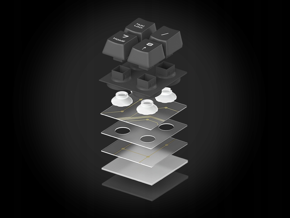 Клавиатура оснащена чрезвычайно тихим и эффективным мембранным механизмом, который характеризуется быстрым временем отклика – 8 мс, малой силой нажатия – 55 г и точка активации 2,5 мм. Такие технические параметры позволят вам всегда быть на шаг впереди соперника!