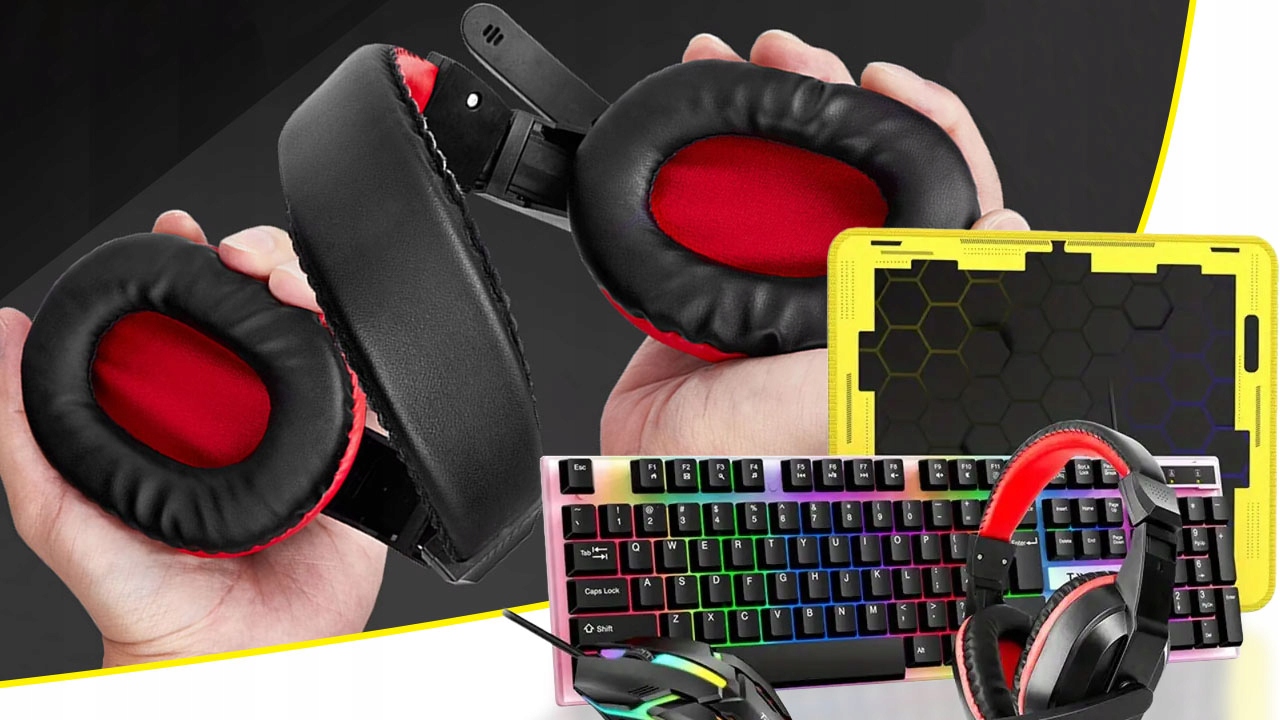 Набор игр клавиатуры RGB Backlit + Mouse + Pad + наушники