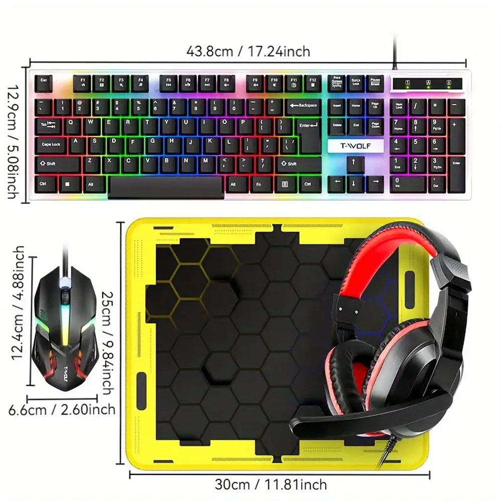 Погрузитесь в мир игр с надежным игровым набором TF240. Это набор, который включает в себя клавиатуру с подсветкой RGB , точные Gaming Mouse , удобные наушники с микрофоном и большой под накладной под мышкой . Благодаря ему, ваши впечатления от игры появятся на совершенно новом уровне! Набор был разработан для игроков, предлагая высокое качество звука, удобство использования и эффективное и точный контроль над каждой игрой. Это идеальное решение для людей, которые хотят оснастить себя всеми необходимыми аксессуарами в одном пакете.