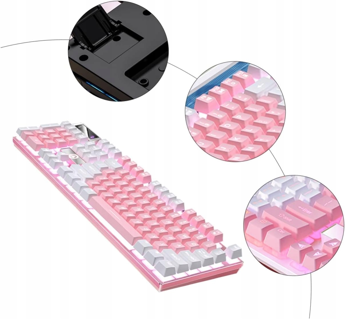 - ✅Проводная игровая клавиатура YINDIAO K500 выполнена в розово-белой цветовой гамме, которая идеально соответствует эстетике девочек, одновременно милой и крутой.