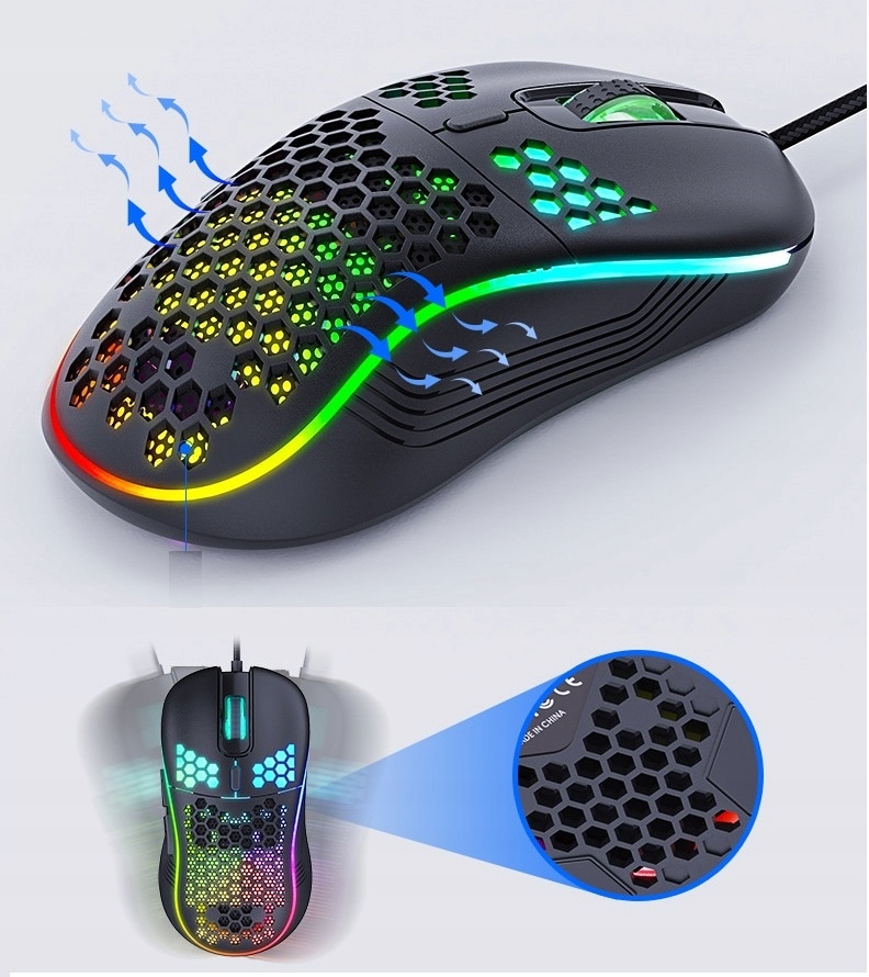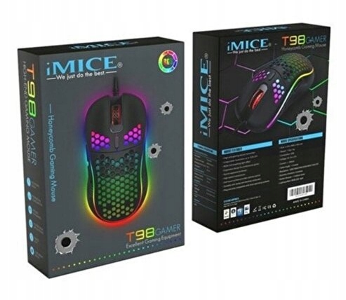 Легкая программируемая игровая мышь T-98 Gamer со светодиодной RGB-подсветкой и сотовыми вырезами.