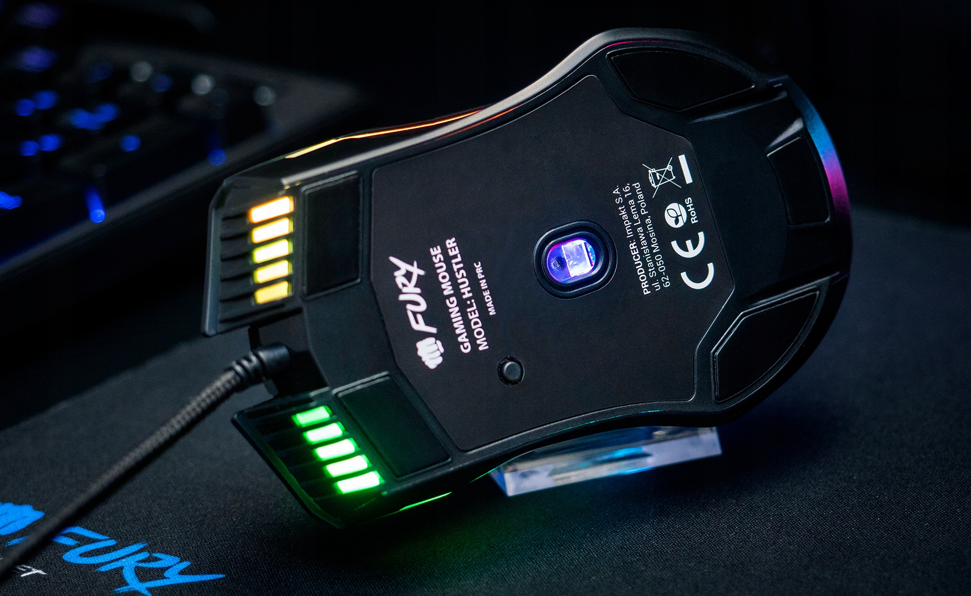 Fury Hustler дополнен феноменальной RGB-подсветкой с эффектом радуги, которая неповторимо преобразит любую игровую станцию. Глубокий элегантный черный цвет устройства в сочетании с яркой RGB-подсветкой позволяет мыши вписаться в любое пространство и всегда выглядеть впечатляюще. Побеждайте в уникальном стиле вместе с Fury Hustler!