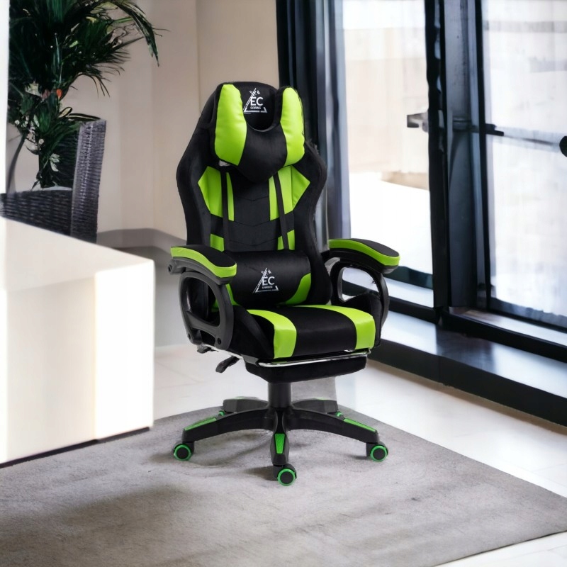 Позаботьтесь о том, чтобы вам было комфортно во время игры, учебы или работы за компьютером. Игровое кресло в динамичном зелено-черном цвете сочетает в себе современный дизайн с функциональностью, обеспечивая комфорт даже во время длительных игр.