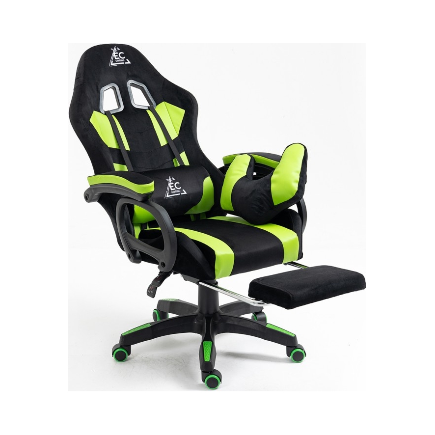 Поворотное игровое кресло «СТУДЕНТ» с подставкой для ног и массажной подушкой, зеленое KO23ZIE