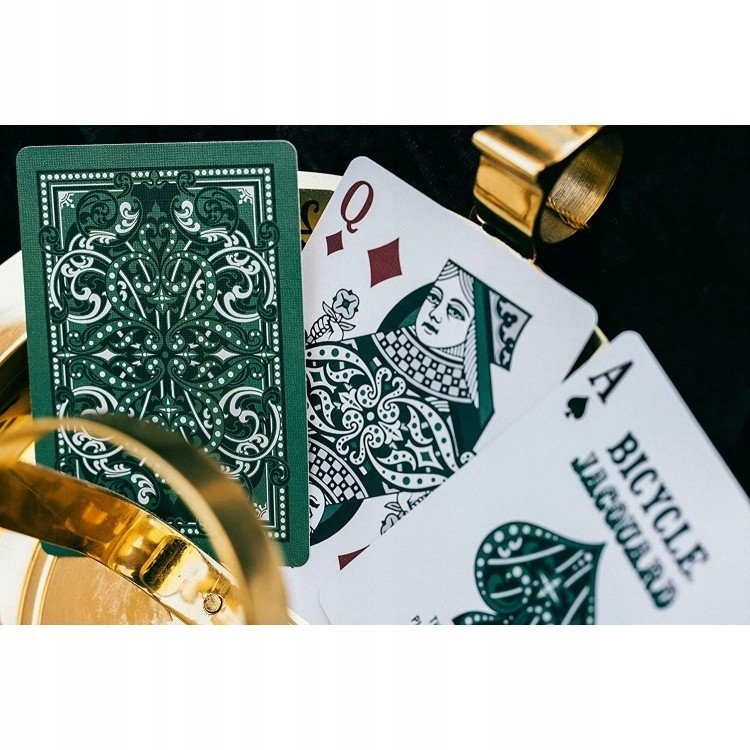 Велосипедный жаккард черпает вдохновение из сложных декоративных узоров, которые часто вплетаются в ткань, что приводит к созданию красивых изображений. Жаккардовый футляр с вплетенными деталями из изумрудно-зеленой и серебряной фольги создает ослепительный и эффектный вид. Точно так же, как жаккардовые станки произвели революцию в ткацких станках благодаря своей работе «карточной цепочки», эта высококачественная колода карт была разработана и изготовлена с использованием той же усовершенствованной и инновационной технологии.