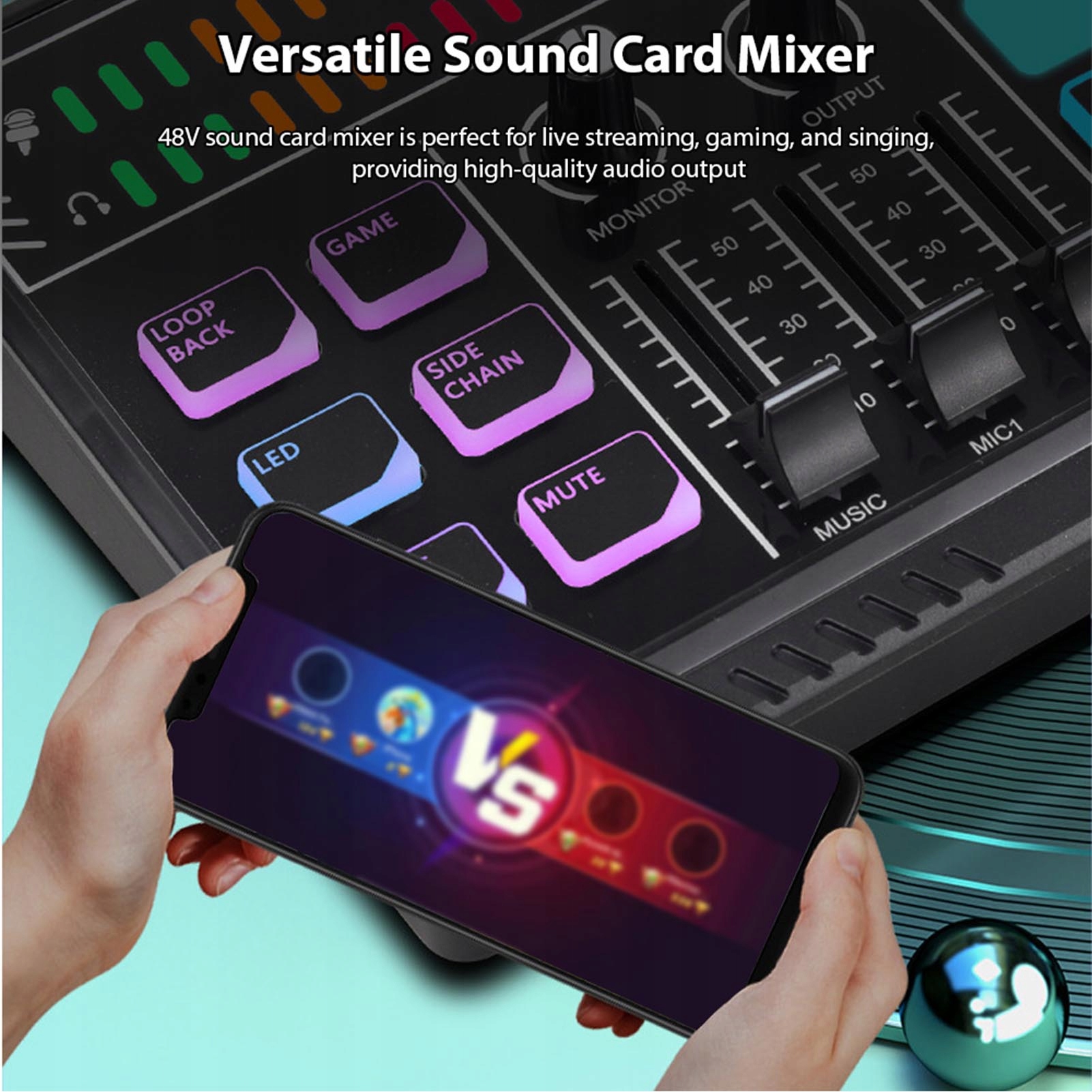1. Универсальный микшер звуковой карты. Наш микшер звуковой карты 48 В идеально подходит для потокового вещания, игр и пения, обеспечивая высококачественный аудиовыход, который улучшает общее впечатление.