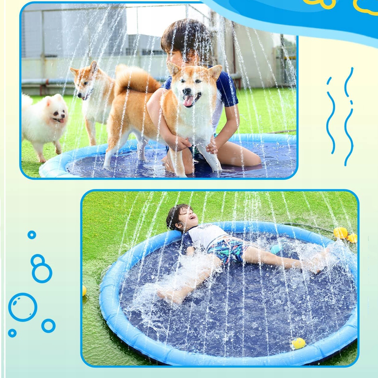 🌊 Безопасный и прочный материал: Безопасность вашего малыша — наш главный приоритет. Этот распылитель воды для детей и собак изготовлен из экологически чистого ПВХ. материал, нескользящий, не содержит бисфенола А и фталатов, безопасен для ежедневного использования, толщина 0,45 мм на 30 % толще, чем у других брызговиков, высококачественная технология герметизации кромок не позволяет легко сломаться