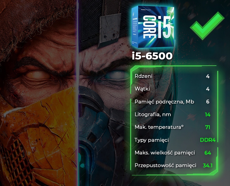 - Процессор: Intel Core i5 6500 4 x 3,2/3,6 ГГц (кэш 6 МБ).