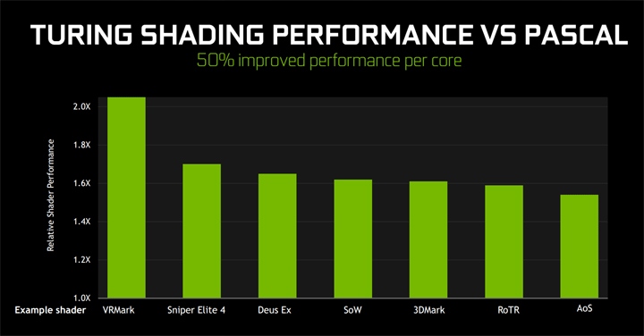Благодаря одновременным операциям с плавающей и фиксированной точкой, технологии адаптивного шейдинга и новой унифицированной архитектуре памяти с вдвое большим кэшем, чем у карт предыдущего поколения, шейдеры с поддержкой Turing обеспечивают невероятный прирост производительности в современных играх.