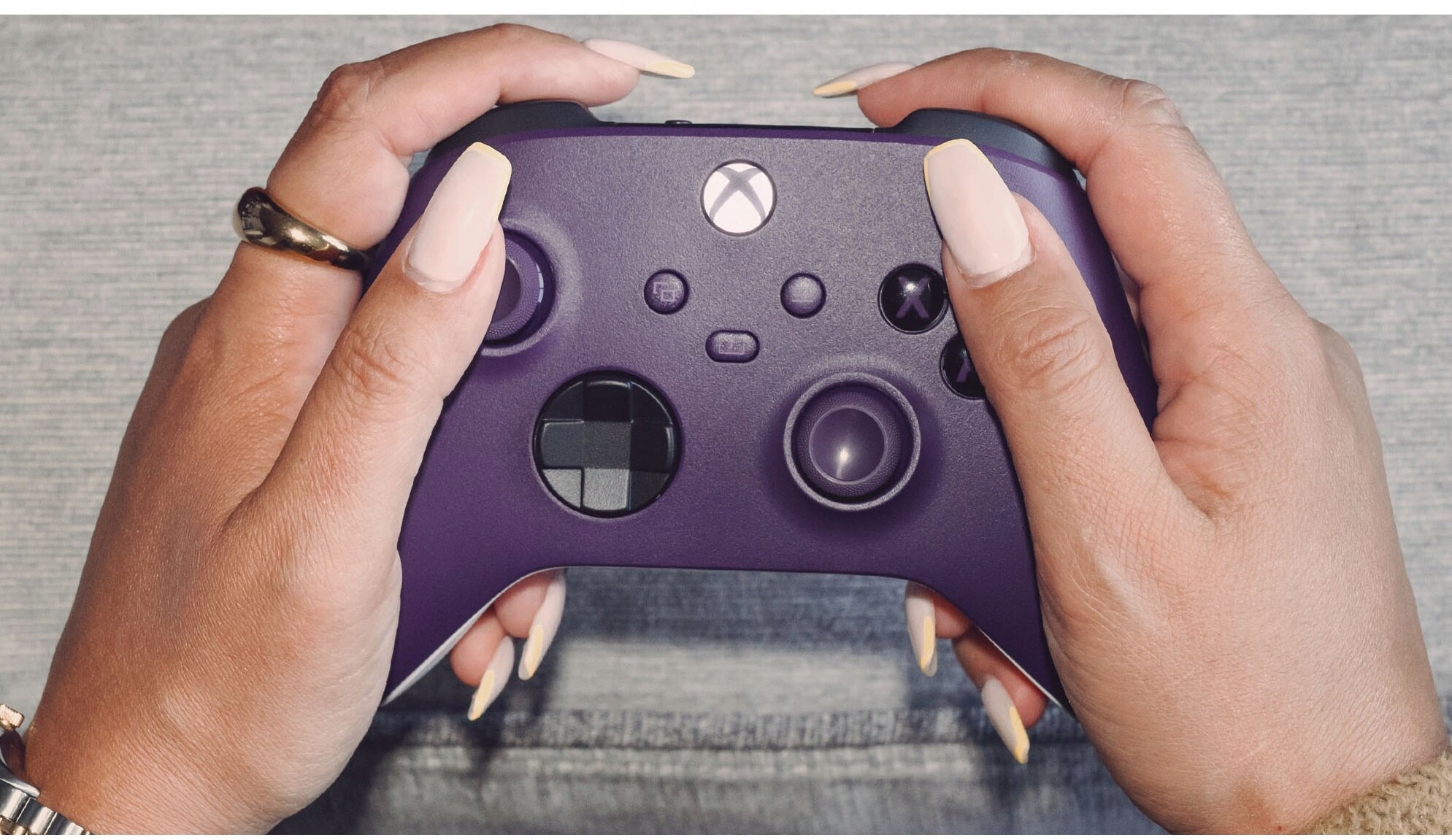 Изучите обновленный дизайн беспроводного геймпада Xbox Astral Purple, который теперь имеет контурные поверхности, улучшенную геометрию и повышенный комфорт во время игры. Оставайтесь на цели благодаря новой гибридной крестовине и текстурированным поверхностям на спусковых крючках, бамперах и задней части корпуса. Легко снимайте и делитесь контентом, например снимками экрана, записями и т. д., с помощью кнопки «Поделиться». Подключитесь напрямую к консоли или компьютеру через порт USB-C®.