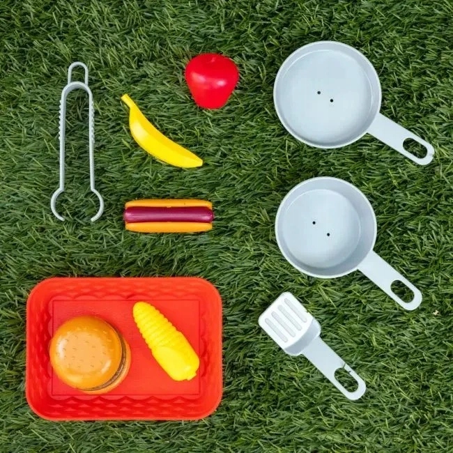 Внизу игровой башни, спроектированной как игровой домик, спереди находится стойка со встроенной кухней с грилем, плитой и раковиной. К кухонному оборудованию также относятся кухонная утварь и пластиковые пищевые продукты. Над прилавком висит доска, на которой дети могут писать свое ежедневное меню. Вход в нижний дом осуществляется через деревянную дверь со звонком, рядом с которой расположено большое французское окно. О визите детям сообщает входной звонок, и они могут разместить его в модуле для пикника, где им могут подать деликатесы из своего меню. Игровая башня покрыта массивной деревянной двухэтажной крышей.