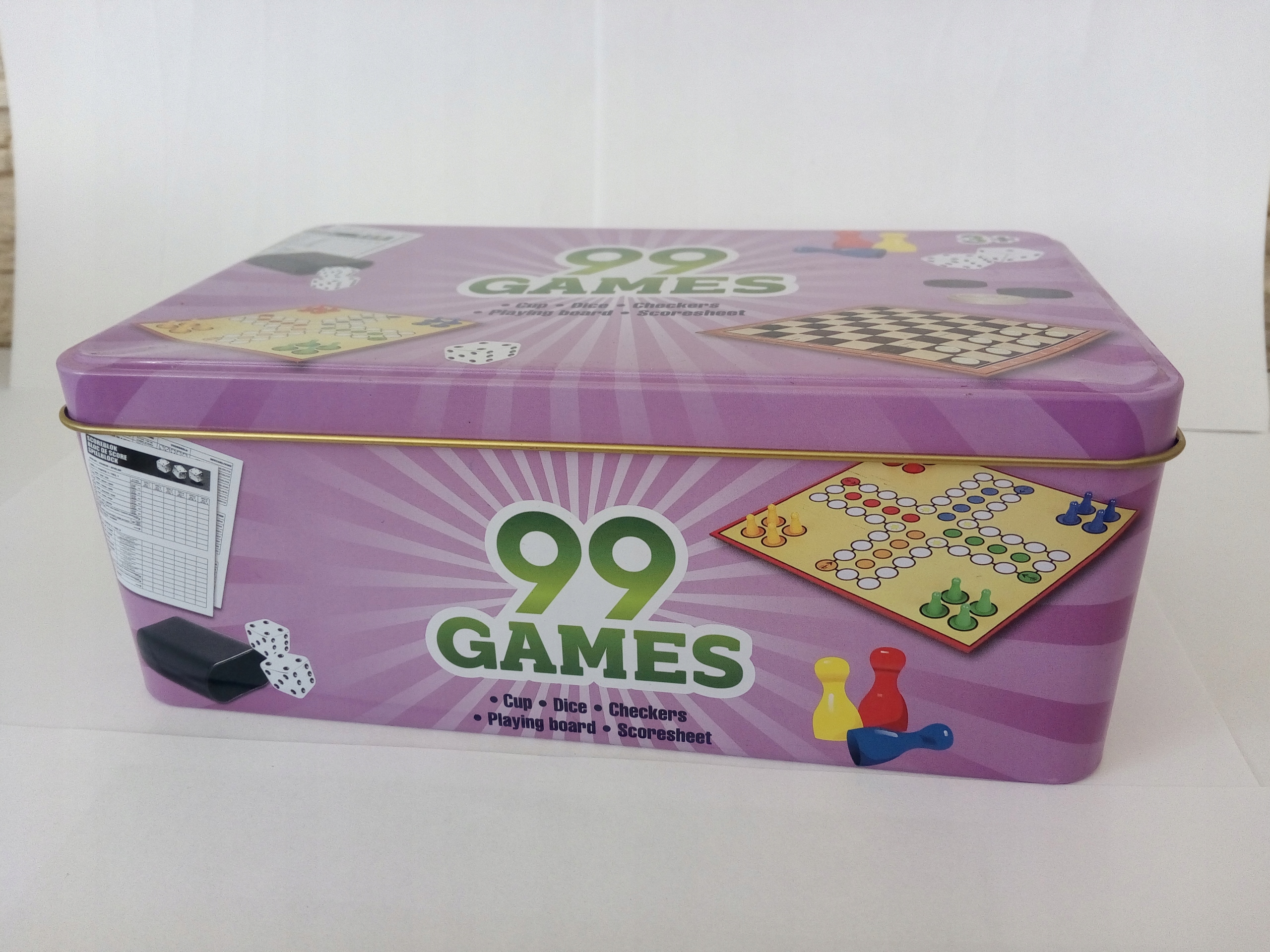 Благодаря этой удобной коробке, содержащей до 99 игр, вам больше никогда не будет скучно. В ней, среди прочего, содержатся: Китайская игра, шашки, игральные кости.