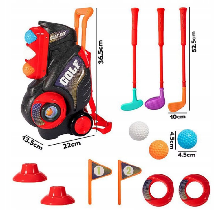 НАБОР МИНИ-ГОЛЬФ ДЛЯ ДЕТЕЙ ИГРОВЫЕ НАВЫКИ ТЕЛЕЖКА БАНКИ ШАРЫ